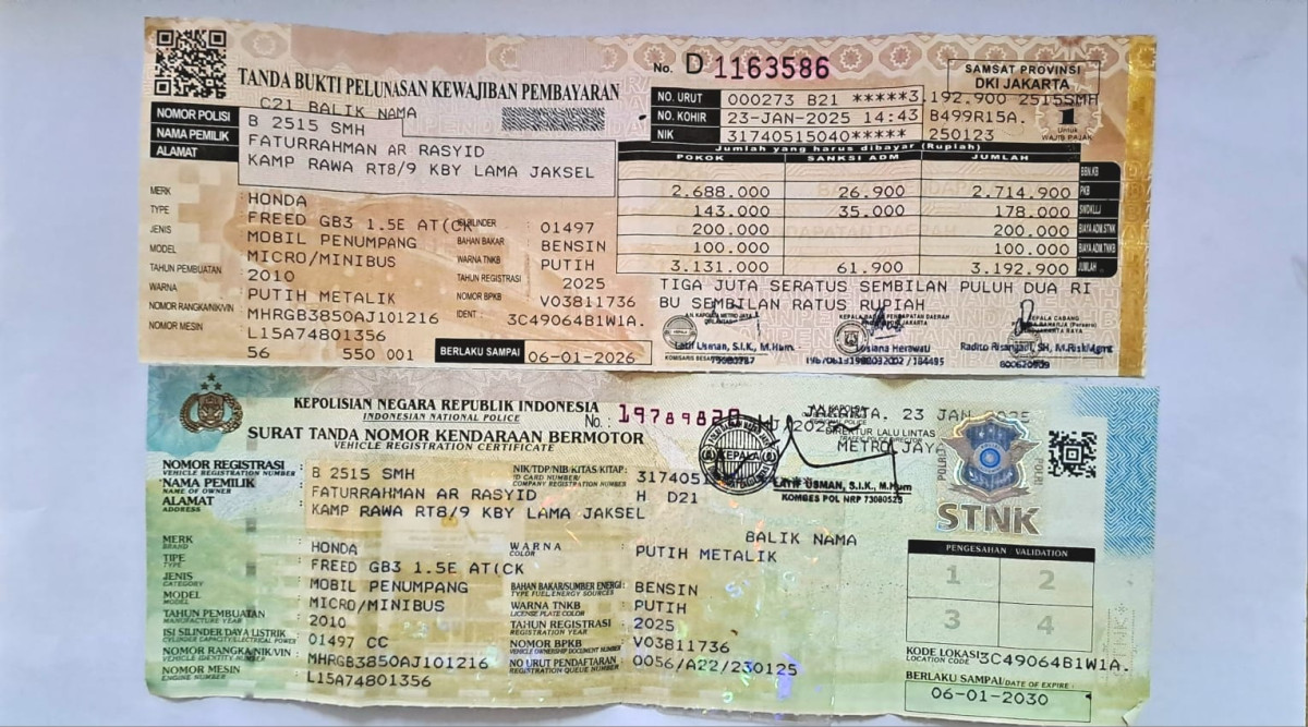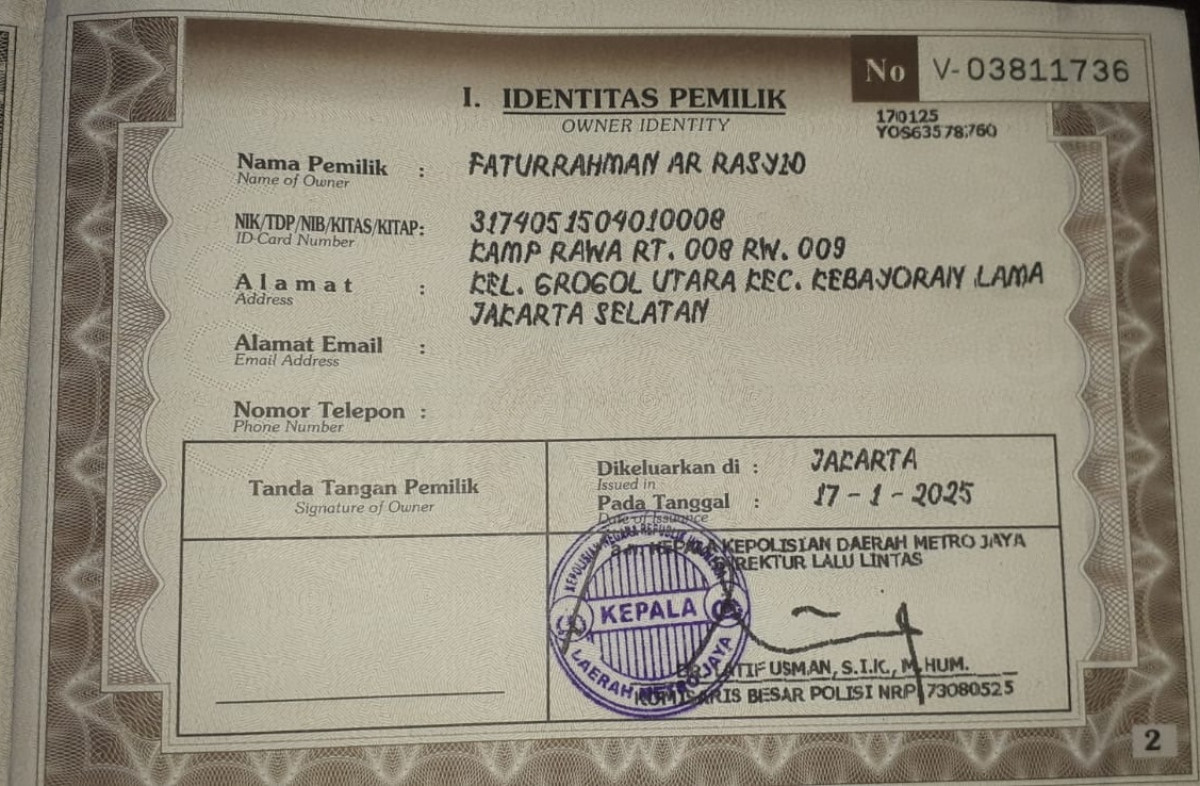 | Pajak STNK | : | 6 Januari 2026 |