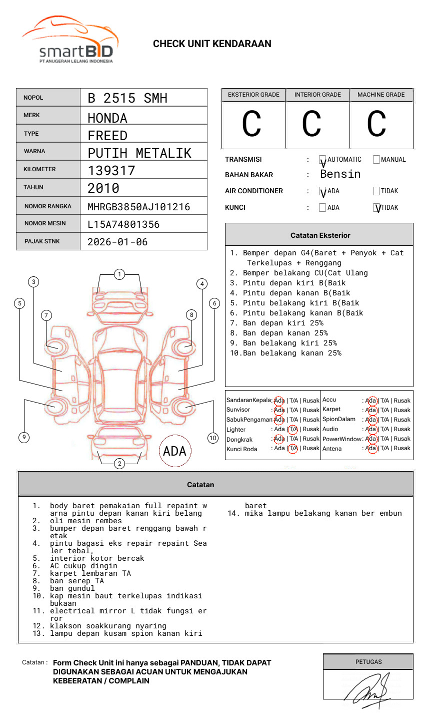SEBELUM MELAKUKAN PENAWARAN UNIT PESERTA LELANG WAJIB MELAKUKAN PENGECEKAN UNIT DAN DOKUMEN TERLEBIH DAHULU // PIC MAS UD : 081213061687// UNIT DIKENAKAN BIAYA PPN 1.1% DARI HARGA TERBENTUK // KET E-SAMSAT "NOPOL BLOKIR JUAL"