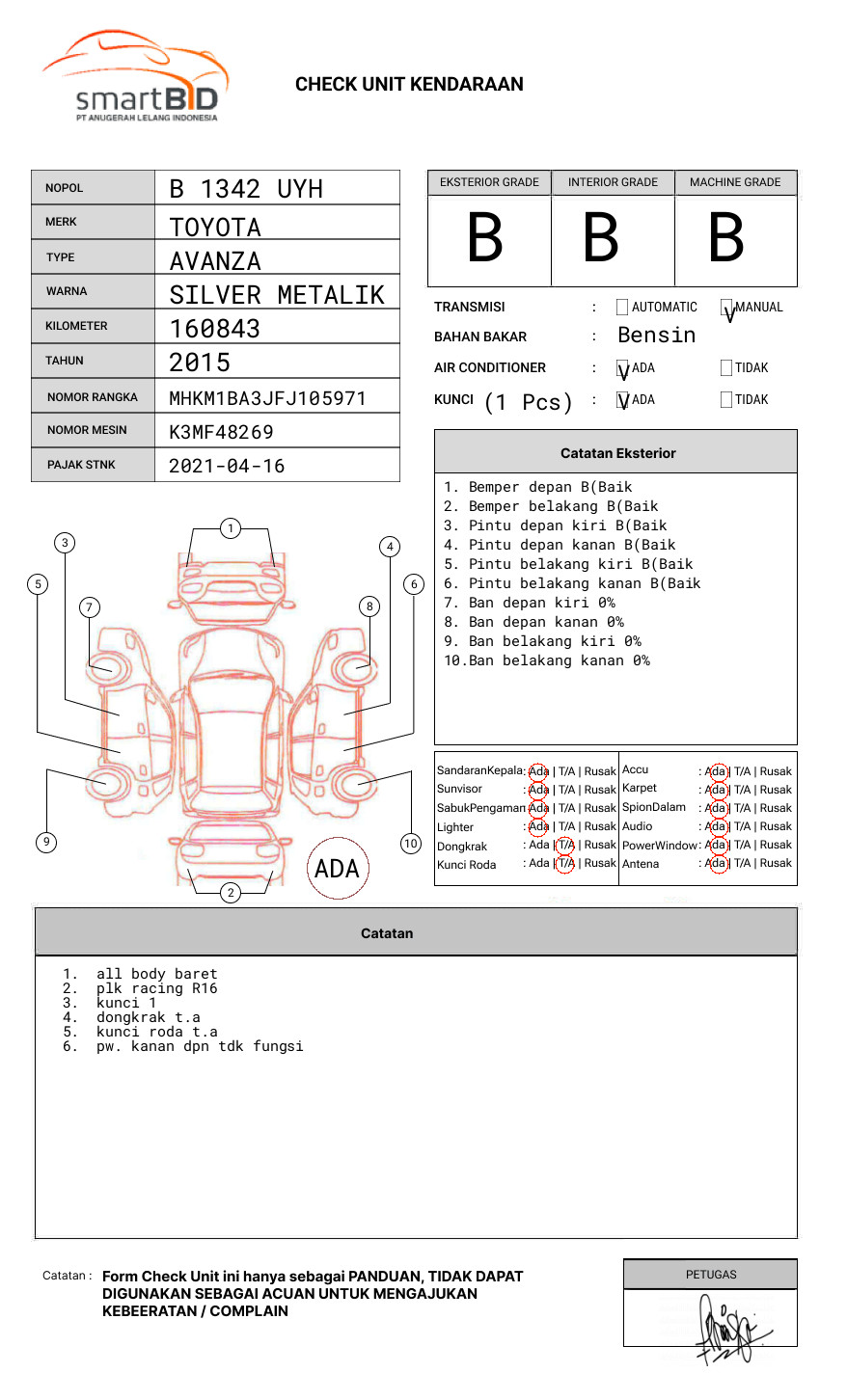 SEBELUM MELAKUKAN PENAWARAN UNIT PESERTA LELANG WAJIB MELAKUKAN PENGECEKAN UNIT DAN DOKUMEN TERLEBIH DAHULU // PIC FAUZI : 0821-2402-6631 //