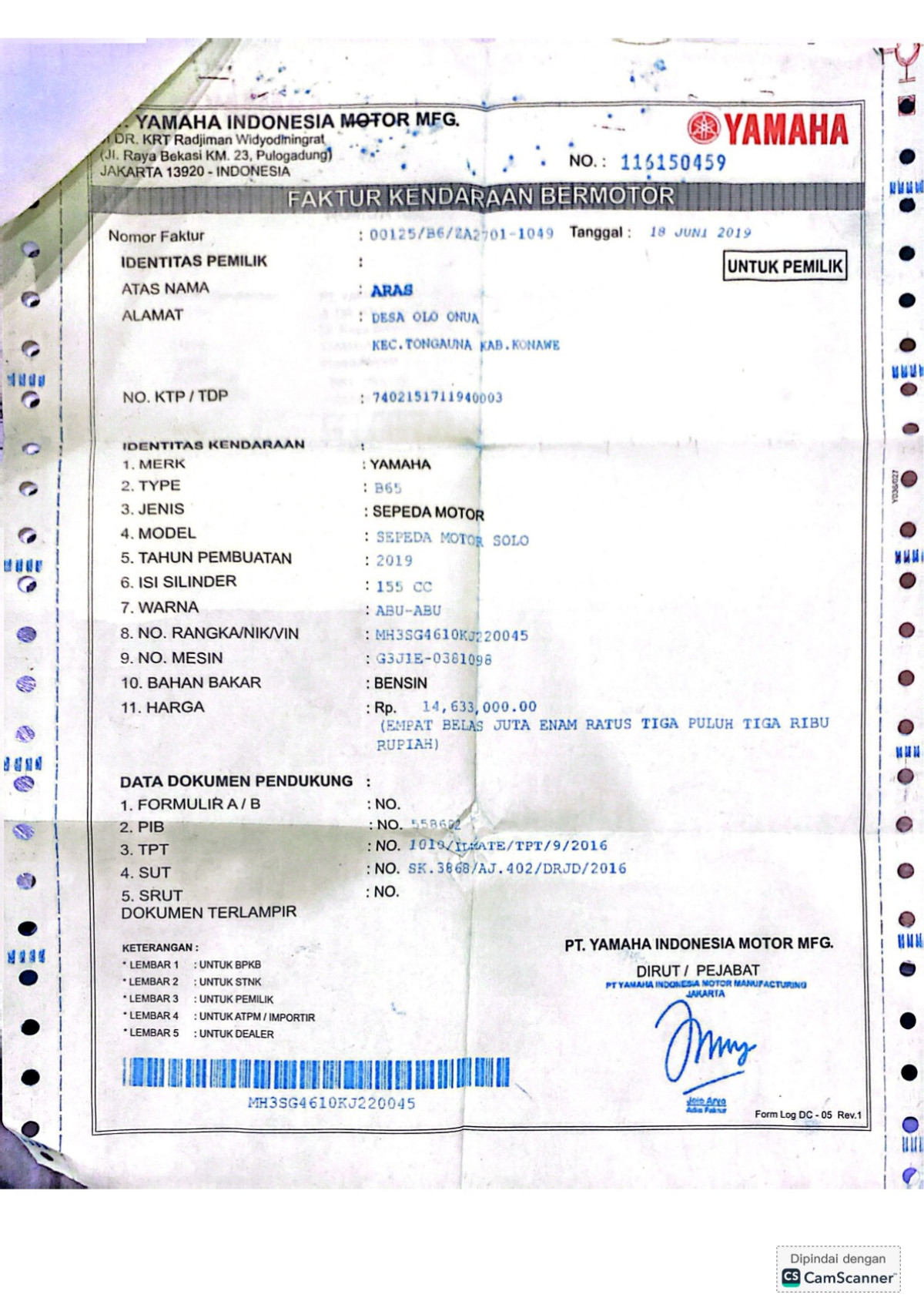 | No. Rangka | : | MH3SG4610KJ220045 |