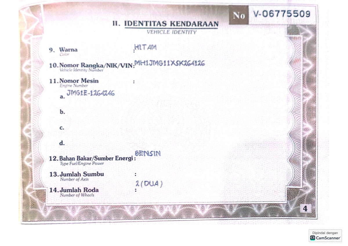 | No. Rangka | : | MH1JMG11XSK264126 |