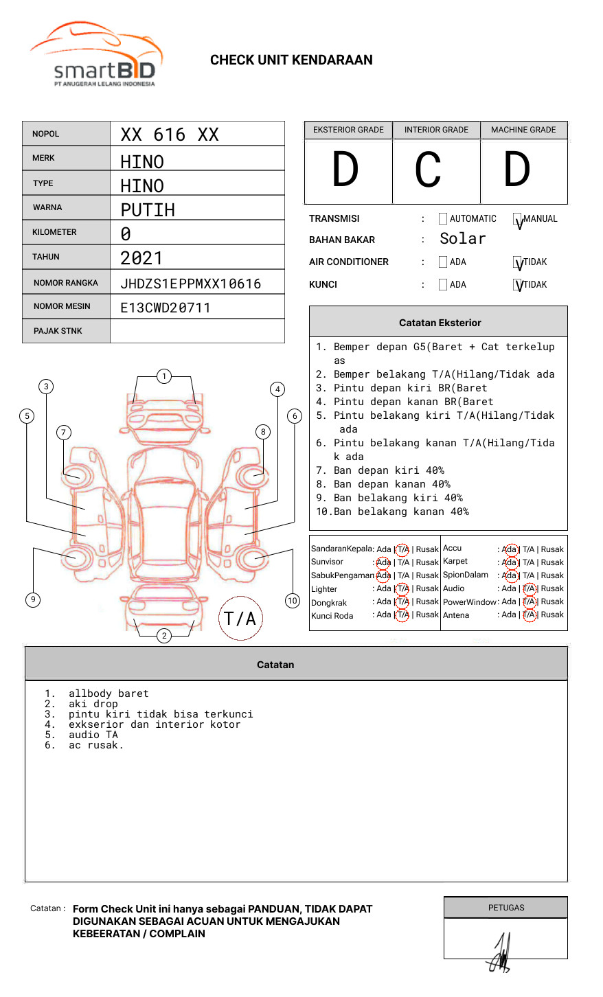 | STNK | : | Tidak Ada |