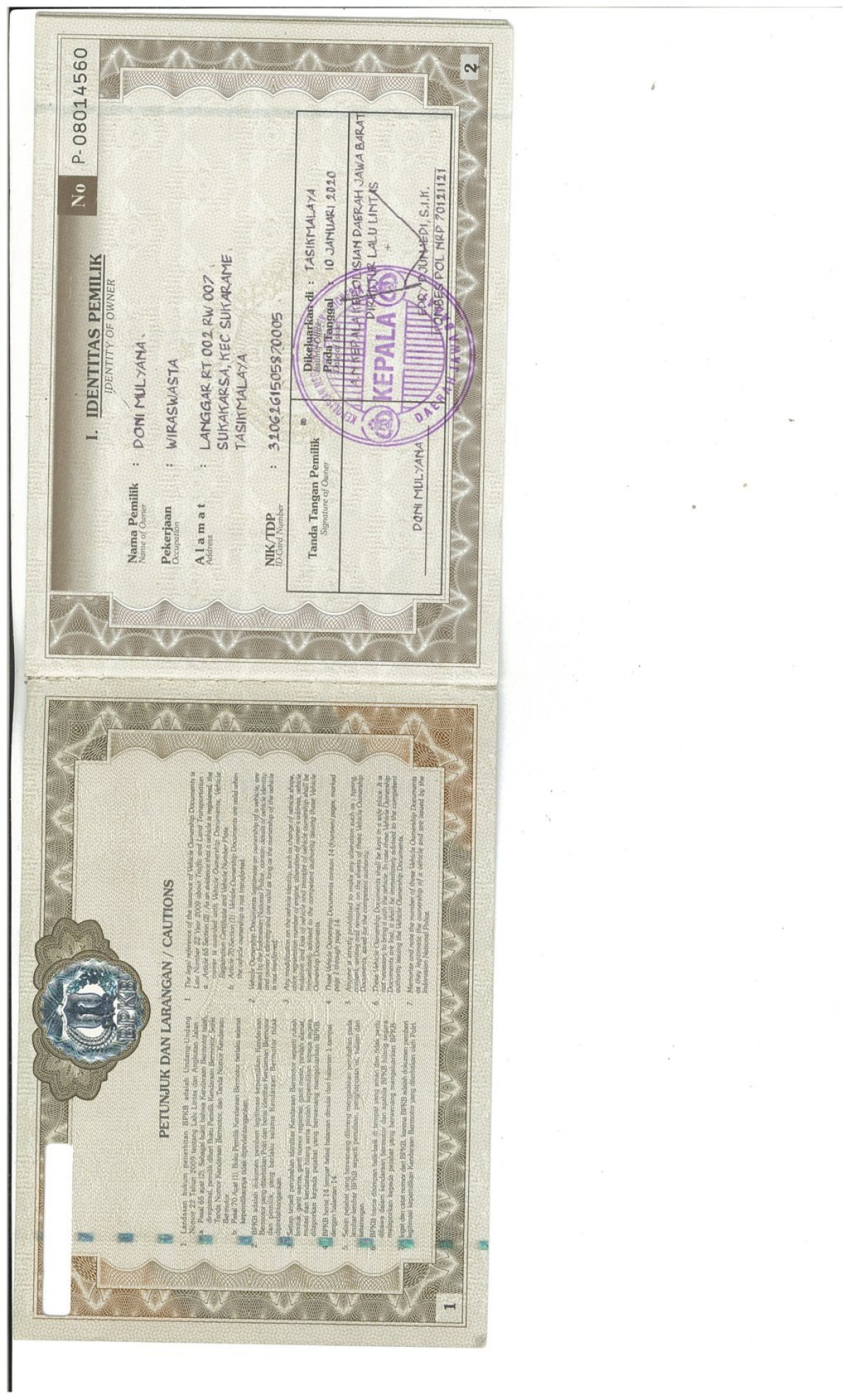 | No. Polisi | : | Z 1034 NV |