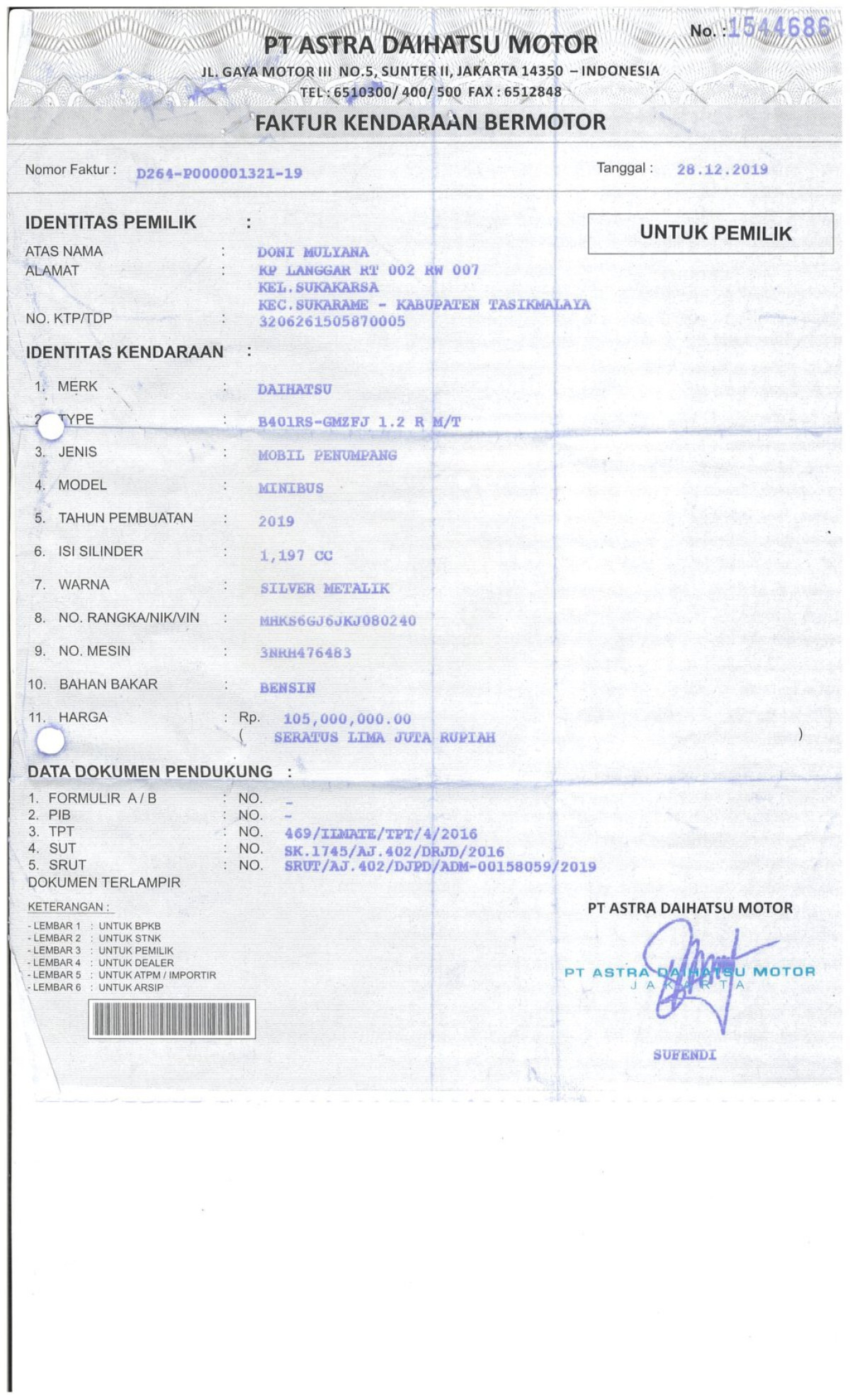 | KWT Blangko | : | Tidak Ada |