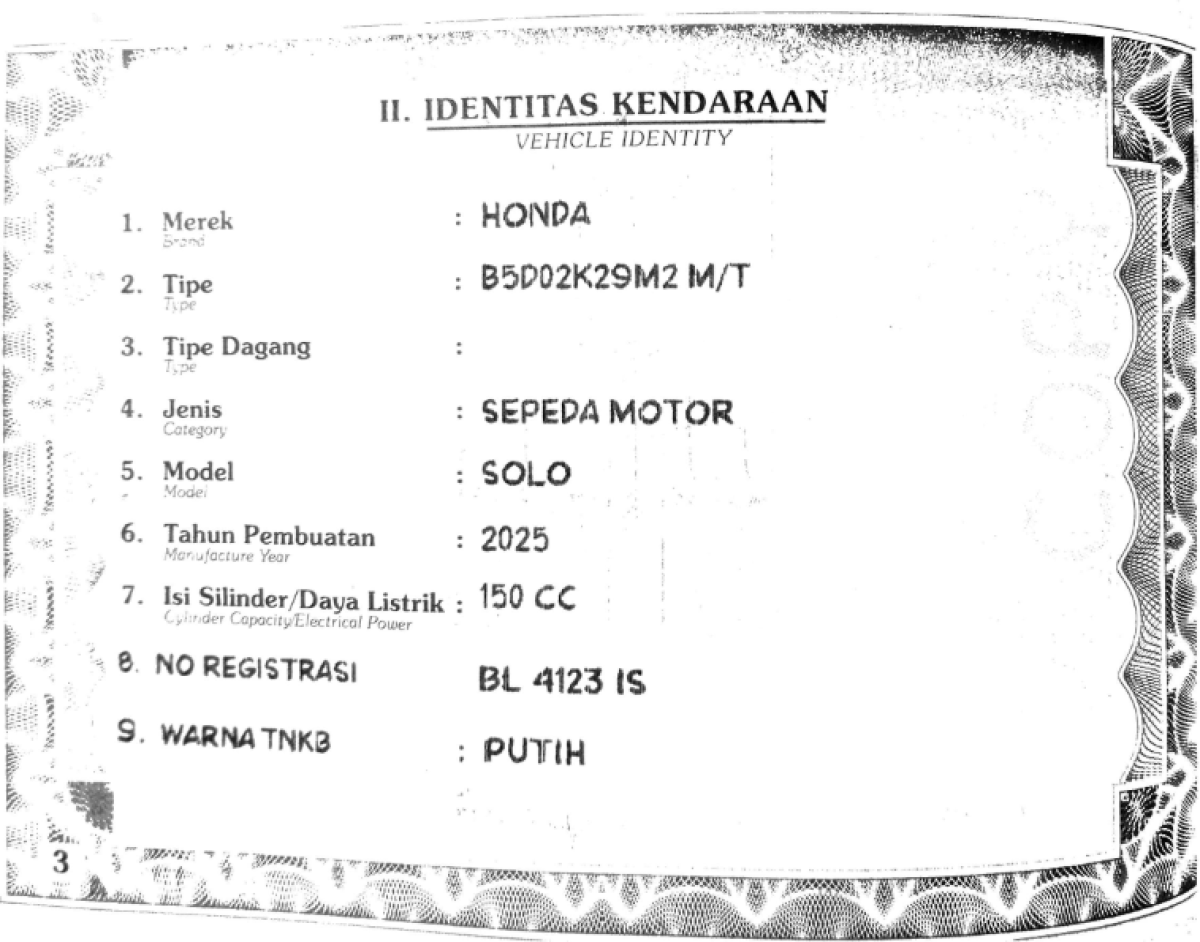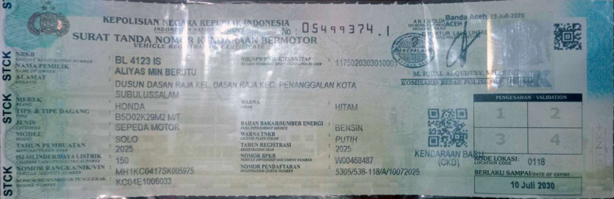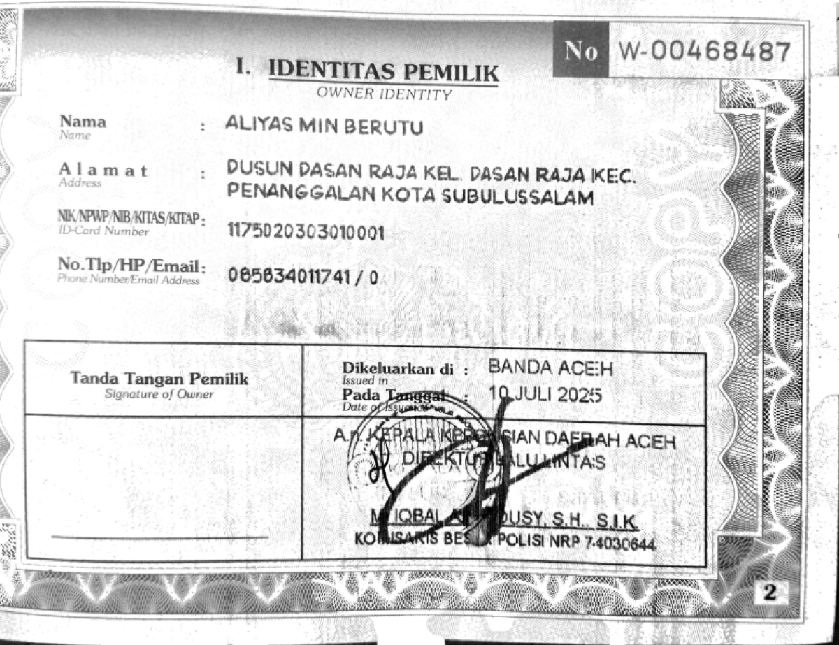| No. Polisi | : | BL 4123 IS |
