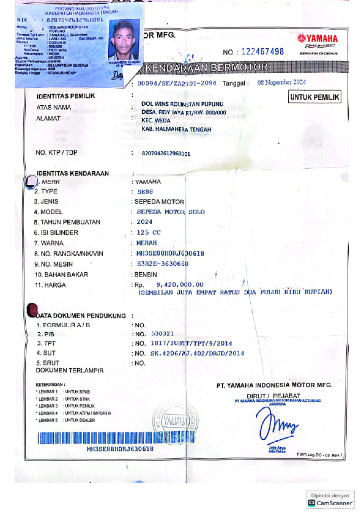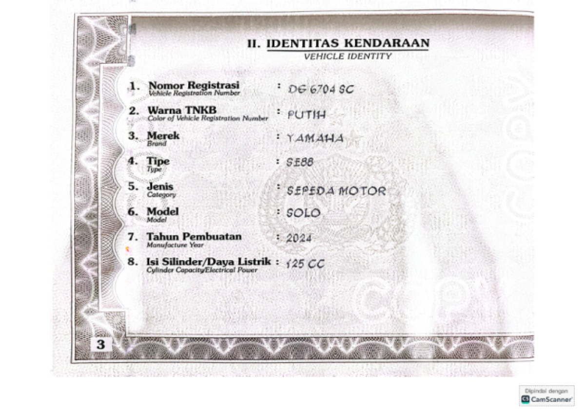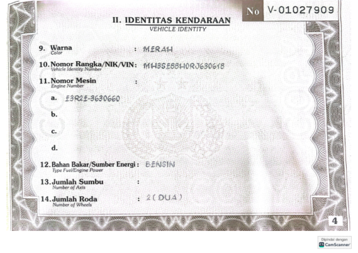 | No. Rangka | : | MH3SE88H0RJ630618 |