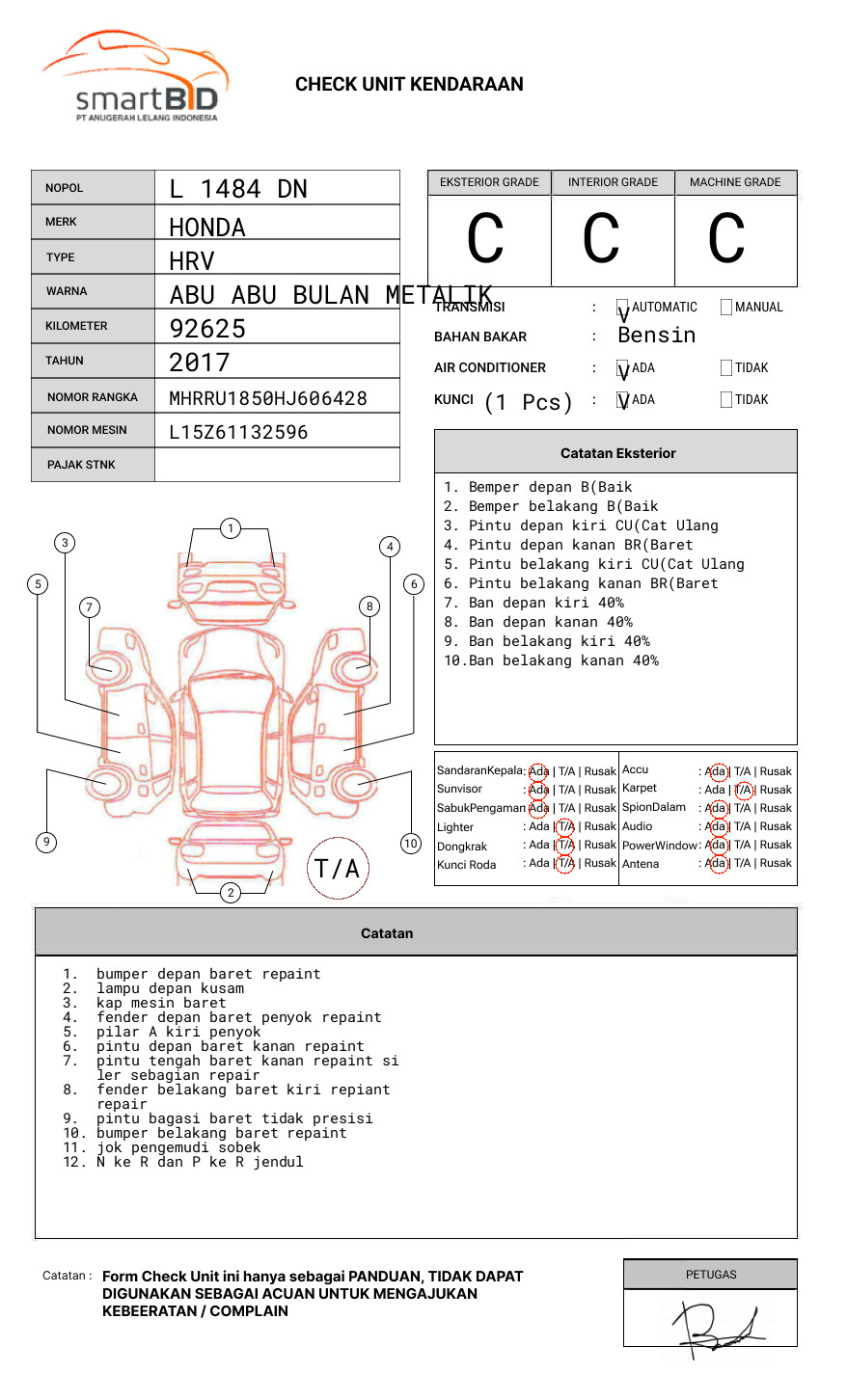 SEBELUM MELAKUKAN PENAWARAN UNIT PESERTA LELANG WAJIB MELAKUKAN PENGECEKAN UNIT DAN DOKUMEN TERLEBIH DAHULU // PIC AWAL +62 895-3231-57272 / ANDRI 085136886212