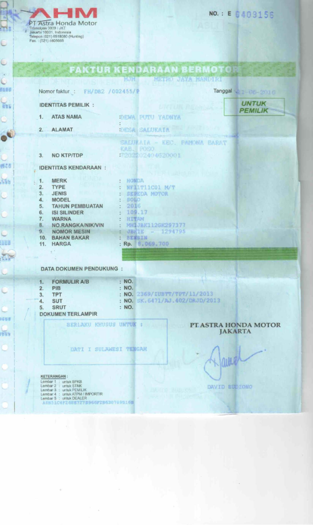 UNIT TIDAK DILAKUKAN PENGECEKAN OLEH TIM SMARTBID// SEBELUM MELAKUKAN PENAWARAN HARAP CEK KONDISI UNIT DAN DOKUMEN TERLEBIH DAHULU// WAJIB MENGHUBUNGI PIC DAN DATANG KE LOKASI UNTUK PENGECEKAN UNIT// UNIT DILELANG APA ADANYA PERMASALAHAN YANG TIMBUL DILUAR TANGGUNG JAWAB SMARTBID// JIKA INGIN MENGAMBIL UNIT HARAP UNTUK KONFIRMASI DAHULU KE SMARTBID // JIKA YANG MENGAMBIL BIDDER HARAP MEMBAWA KTP ASLI// PENGAMBILAN UNIT H+2 HARI KERJA SETELAH PELUNASAN/ADA PERBEDAAN WARNA FISIK DENGAN BPKB//WARNA FISIK PUTIH,WARNA DOKUMEN HITAM// PEMENANG WAJIB TTD SURAT PERNYATAAN DI ATAS MATERAI// NOPOL FISIK TA//FOTO FISIK NOKA NOSIN TA