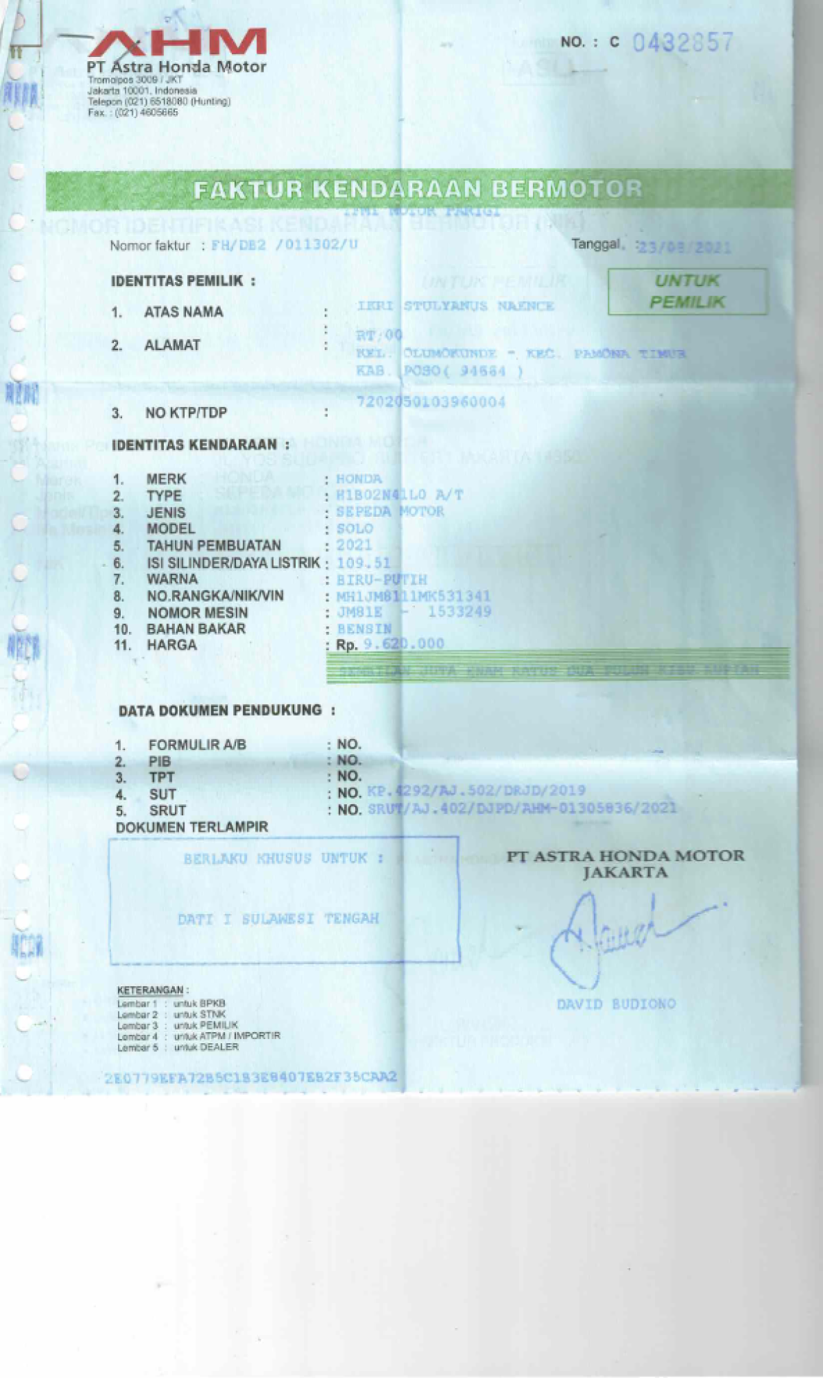 | No. Polisi | : | DN 3304 EY |