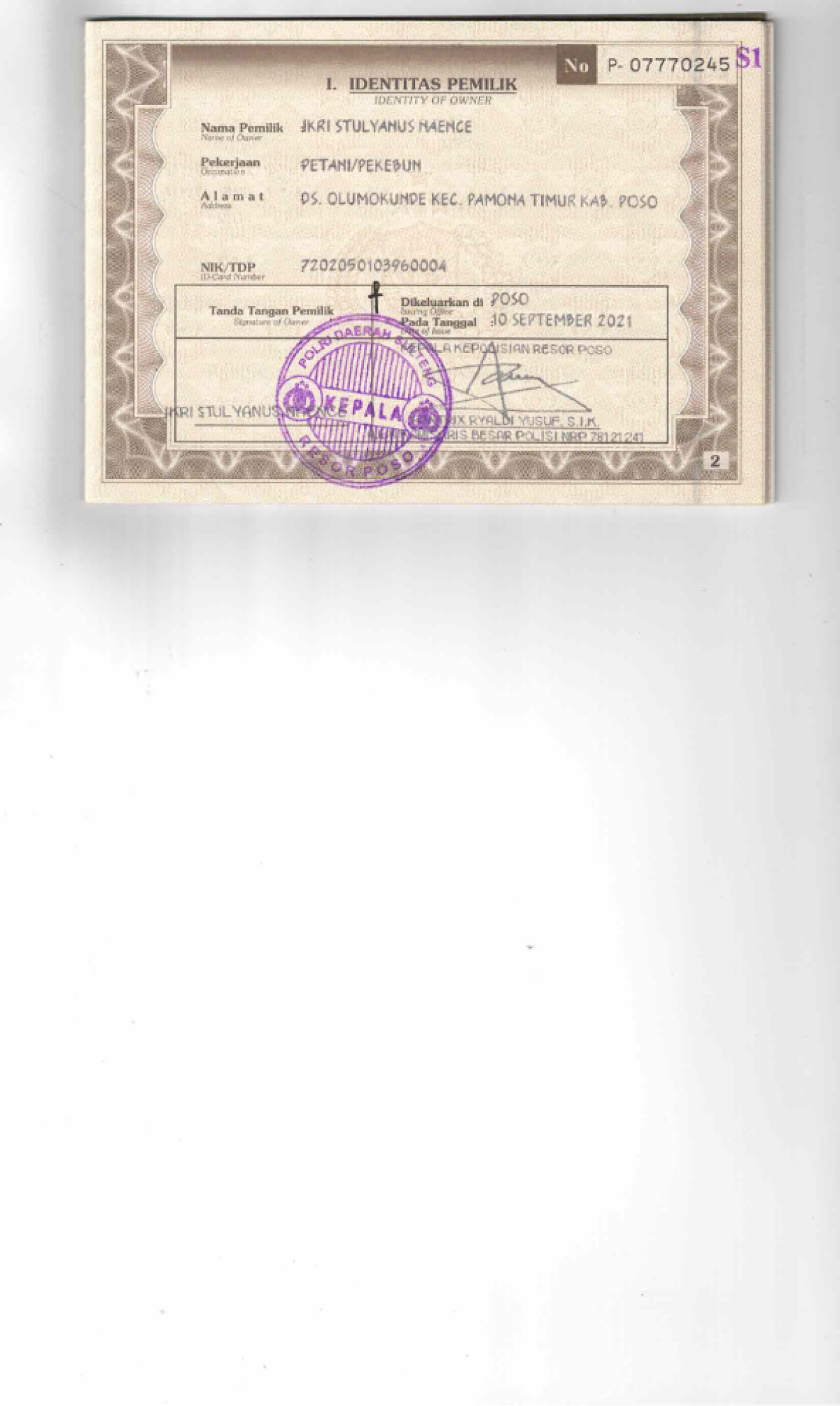 | FK. KTP | : | Tidak Ada |