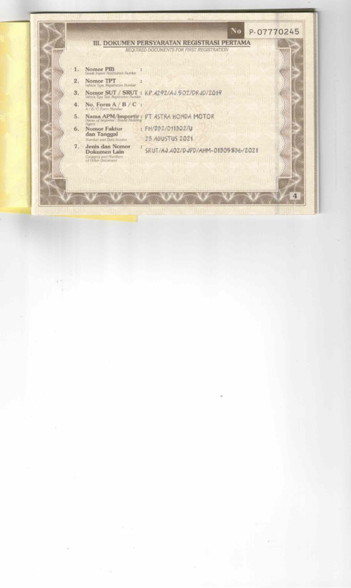 | KWT Blangko | : | Tidak Ada |