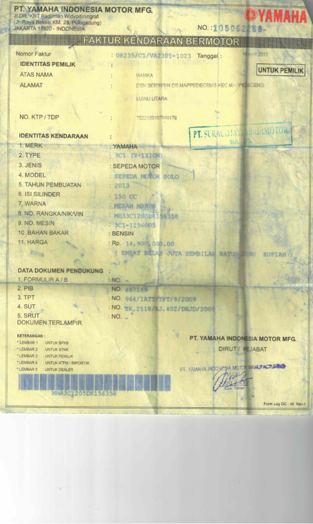 UNIT TIDAK DILAKUKAN PENGECEKAN OLEH TIM SMARTBID// SEBELUM MELAKUKAN PENAWARAN HARAP CEK KONDISI UNIT DAN DOKUMEN TERLEBIH DAHULU// WAJIB MENGHUBUNGI PIC DAN DATANG KE LOKASI UNTUK PENGECEKAN UNIT// UNIT DILELANG APA ADANYA PERMASALAHAN YANG TIMBUL DILUAR TANGGUNG JAWAB SMARTBID// JIKA INGIN MENGAMBIL UNIT HARAP UNTUK KONFIRMASI DAHULU KE SMARTBID // JIKA YANG MENGAMBIL BIDDER HARAP MEMBAWA KTP ASLI// PENGAMBILAN UNIT H+2 HARI KERJA SETELAH PELUNASAN/FOTO NOKA NOSIN TA