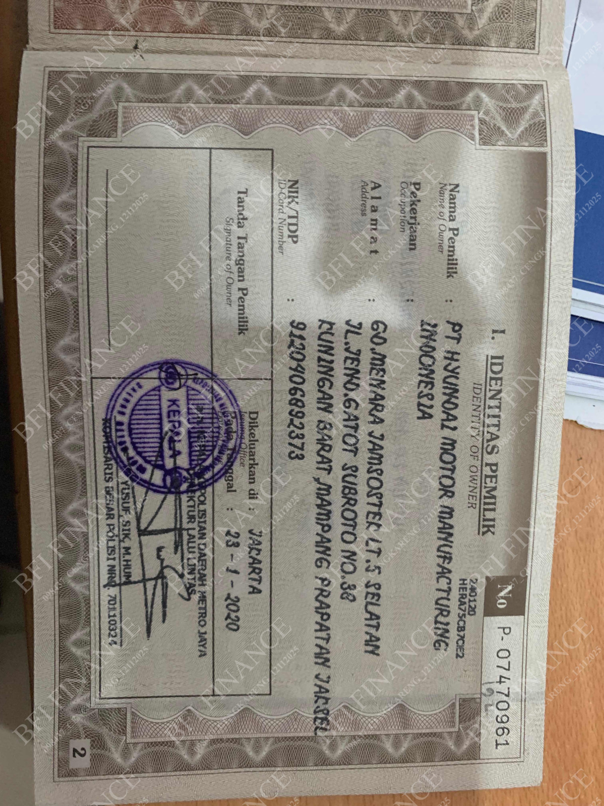 | No. Rangka | : | KMHJ2813MLU190805 |