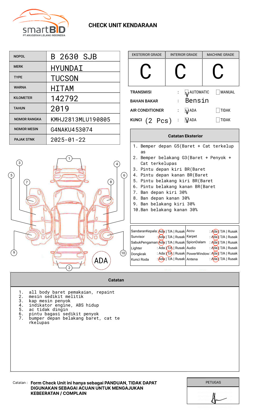 SEBELUM MELAKUKAN PENAWARAN UNIT PESERTA LELANG WAJIB MELAKUKAN PENGECEKAN UNIT DAN DOKUMEN TERLEBIH DAHULU // PIC WAHYU : 082124062748// UNIT DIKENAKAN BIAYA PPN 1.1% DARI HARGA TERBENTUK //
