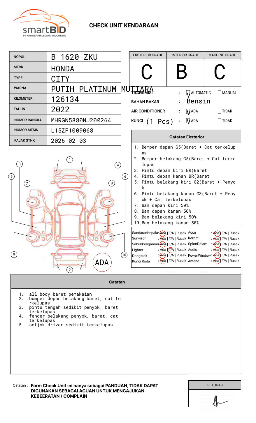 SEBELUM MELAKUKAN PENAWARAN UNIT PESERTA LELANG WAJIB MELAKUKAN PENGECEKAN UNIT DAN DOKUMEN TERLEBIH DAHULU // PIC WAHYU : 082124062748// UNIT DIKENAKAN BIAYA PPN 1.1% DARI HARGA TERBENTUK //