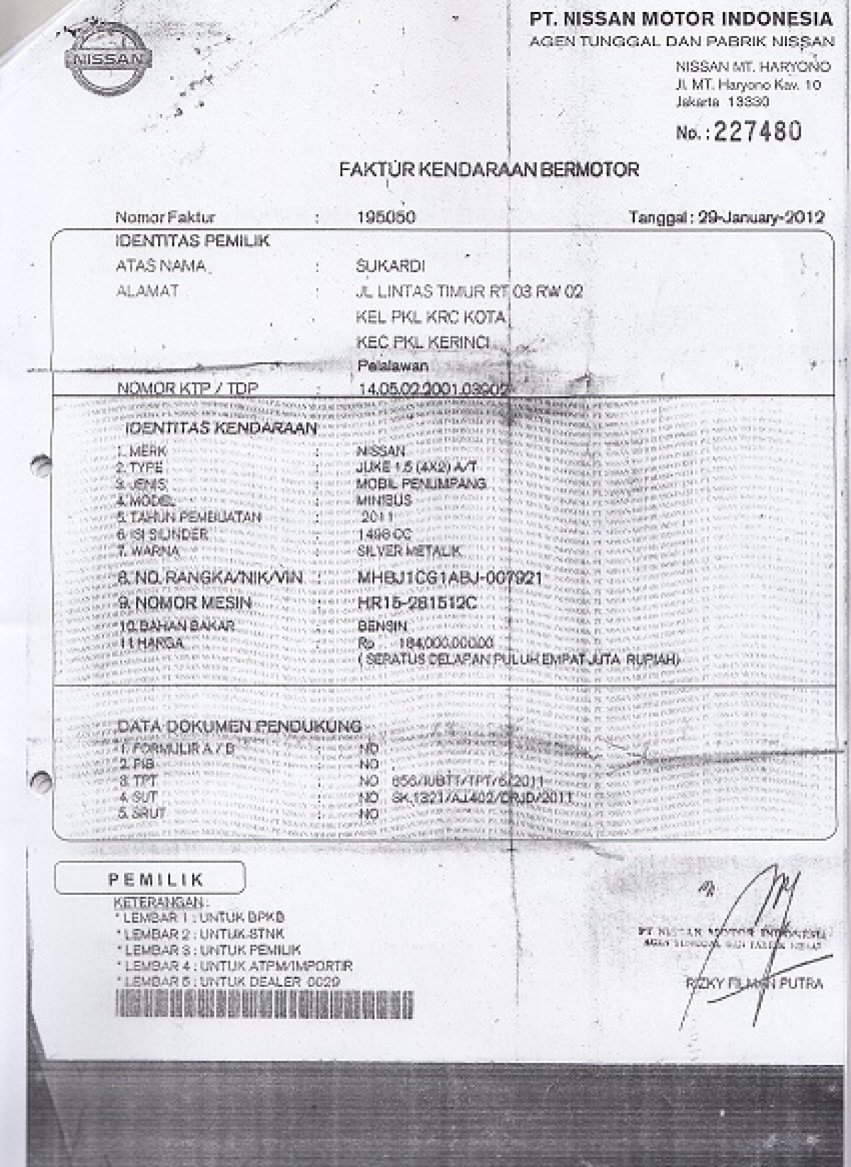 | No. Rangka | : | MHBJ1CG1ABJ007921 |