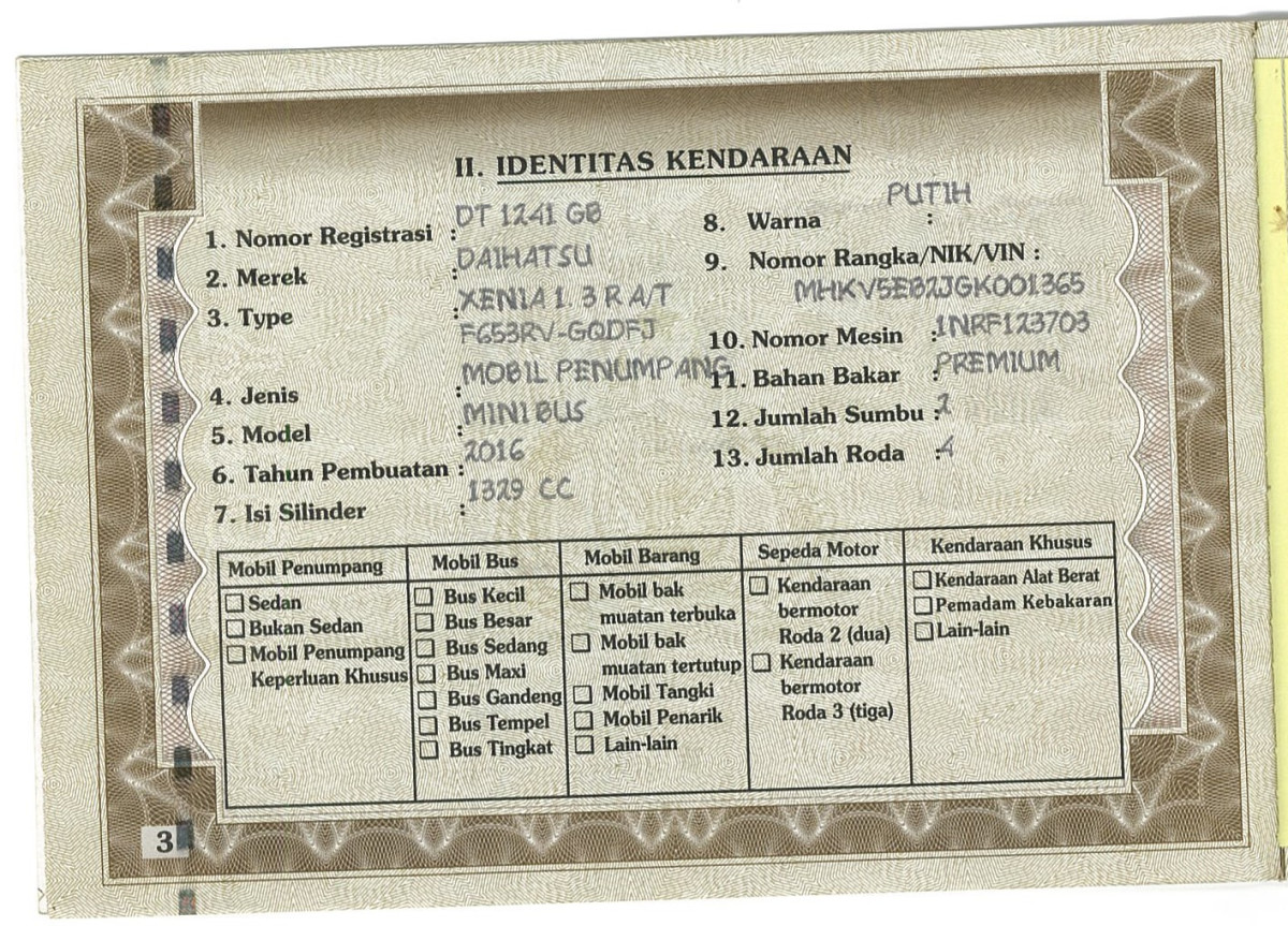 UNIT TIDAK DILAKUKAN PENGECEKAN OLEH TIM SMARTBID// SEBELUM MELAKUKAN PENAWARAN HARAP CEK KONDISI UNIT DAN DOKUMEN TERLEBIH DAHULU// WAJIB MENGHUBUNGI PIC DAN DATANG KE LOKASI UNTUK PENGECEKAN UNIT// UNIT DILELANG APA ADANYA PERMASALAHAN YANG TIMBUL DILUAR TANGGUNG JAWAB SMARTBID// PENGAMBILAN UNIT SLIDE H+2 DARI PELUNASAN // JIKA INGIN MENGAMBIL UNIT HARAP UNTUK KONFIRMASI DAHULU KE SMARTBID // JIKA YANG MENGAMBIL BIDDER HARAP MEMBAWA KTP ASLI // JIKA PENGAMBILAN DIWAKILKAN WAJIB MEMBAWA SURAT KUASA ASLI // UNIT DIKENAKAN BIAYA PPN 1,1% DARI HARGA TERBENTUK// LOKASI UNIT HUBUNGI PIC Bpk. Erwin 0812-7532-9549 // CS PUSAT 081188089292//Plat kuning, Mesin berfungsi, Body tergores, Ban cadangan tidak ada, Alat mobil tidak ada, List plang kanan keropos, Sparkboard depan tidak ada, Head unit imitasi, Headrest depan tidak ada, Seatbelt tengah tidak ada, Kaca depan retak//Gasket Cover Head | Radiator Fan | Muffler | Tire (spare) | Tire (Rr-R) | Wheel Bearing (Rr) | Spare Key (immobilizer) | Wheel Bearing (Fr) | Gasket Cylinder Head | Coil Ignition | Spring (FR) | Clutch Bearing | Tire (Rr-L) | Spring (RR) | Rim (spare) | Tire (Fr-L) | Tire (Fr-R) | Fan Belt | Aircon Evaporator | Clutch Plate | Engine Services (Light) | Brake Pad (Rr) | Brake Pad (Fr) | Brake Master | Battery | Spark Plug(s) | Injector/Carpet Floor (RR) | Seatbelt (Rr-R) | Carpet Floor (FR-R) | Interior Saloon | Bolt Crane and Jack | Carpet Floor (FR-L) | Tool Kit | Carpet Floor (Mid) | Headrest (Fr-R) | Headrest (Fr-L) | Head Unit | Seatbelt (Rr-L)/Windshield Glass | Windshield Wiper | Engine Hood Repair | Door Repair (Trunk) | Fog Lamp (L) | Turn Lamp (Fr-R) | Headlight (Fr-R) | Door Repair (Fr-L) | Fender Repair (Rr-R) | Turn Lamp (Fr-L) | Bumper Repair (Rr) | Door Repair (Rr-L) | Turn Lamp (Rr-L) | Fog Lamp (R ) | Mirror (R ) | Fender Repair (Fr-L) | Fender Repair (Rr-L) | Mirror (L) | Side Skirt Repair (L) | Turn Lamp (Rr-R) | Side Skirt Replace (R) | Headlight (Fr-L) | Fender Repair (Fr-R) | Bumper Repair (Fr)