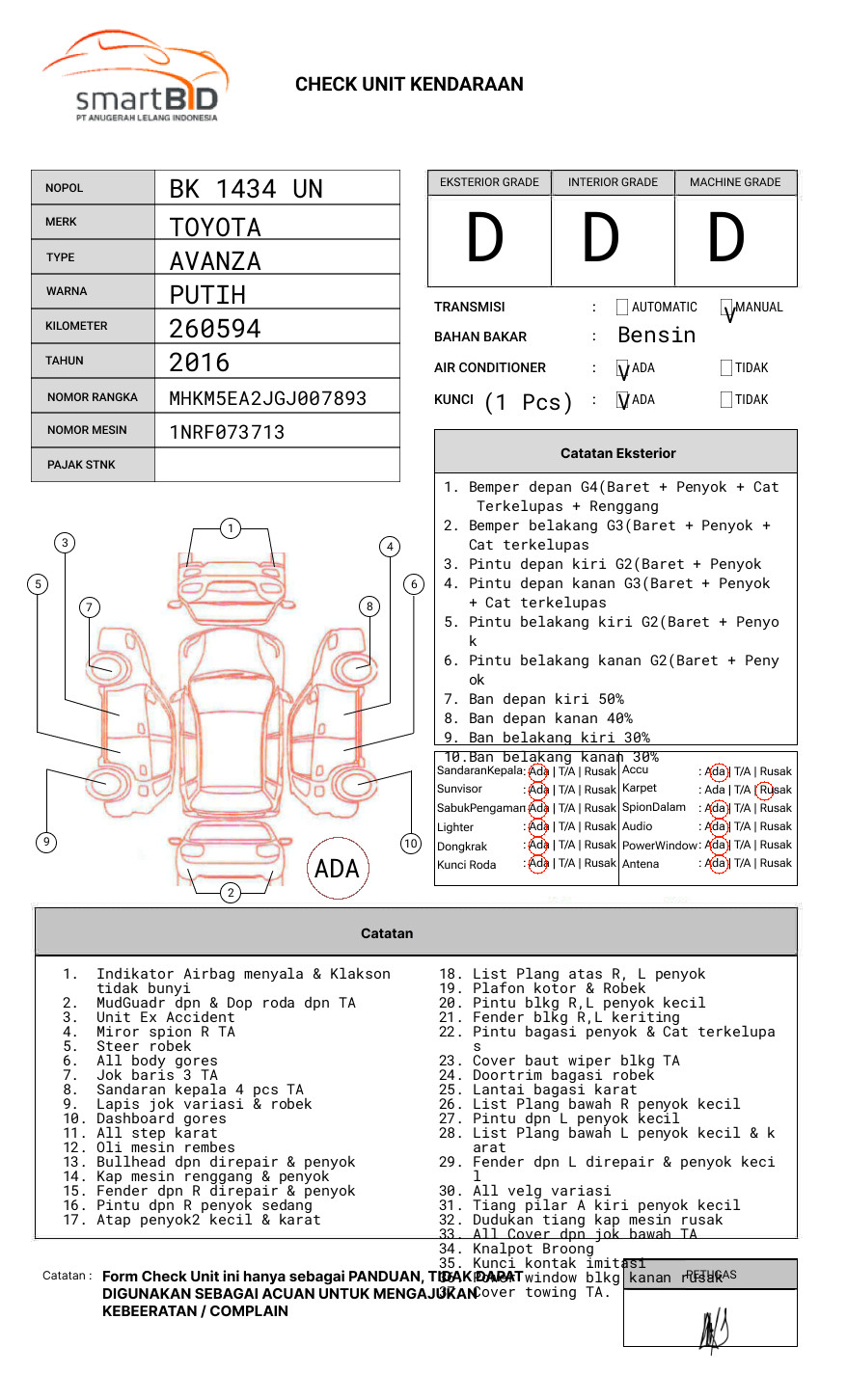 SEBELUM MELAKUKAN PENAWARAN UNIT PESERTA LELANG WAJIB MELAKUKAN PENGECEKAN UNIT DAN DOKUMEN TERLEBIH DAHULU // PIC GERMAN : 0812-6517-3060 // UNIT DIKENAKAN BIAYA PPN 1.1% DARI HARGA TERBENTUK //