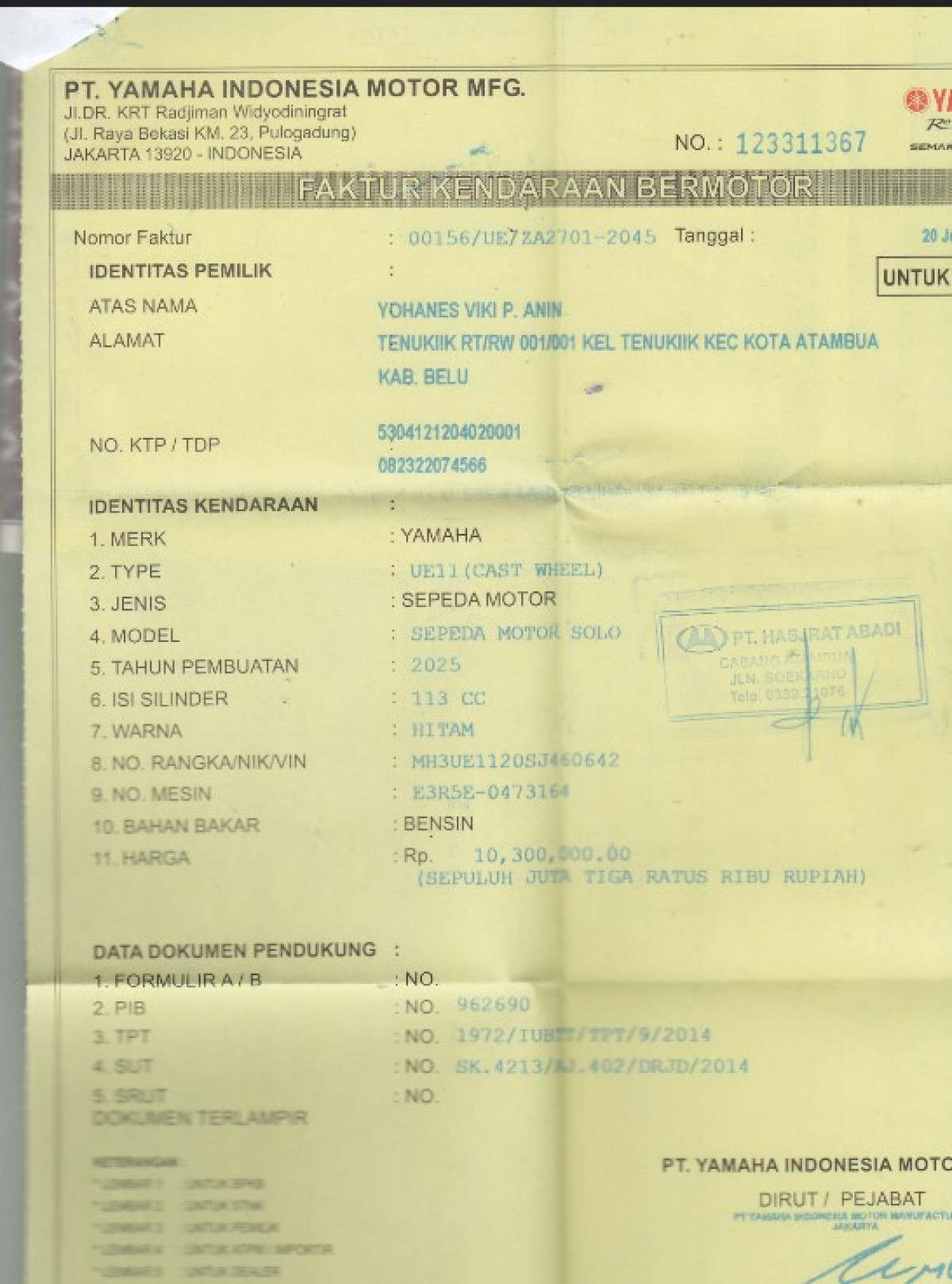 FOTO NOKA NOSIN T/A // NOPOL FISIK T/A // UNIT TIDAK DILAKUKAN PENGECEKAN OLEH TIM SMARTBID// SEBELUM MELAKUKAN PENAWARAN HARAP CEK KONDISI UNIT DAN DOKUMEN TERLEBIH DAHULU// WAJIB MENGHUBUNGI PIC DAN DATANG KE LOKASI UNTUK PENGECEKAN UNIT// UNIT DILELANG APA ADANYA PERMASALAHAN YANG TIMBUL DILUAR TANGGUNG JAWAB SMARTBID// PENGAMBILAN UNIT SLIDE H+2 DARI PELUNASAN // JIKA INGIN MENGAMBIL UNIT HARAP UNTUK KONFIRMASI DAHULU KE SMARTBID // JIKA YANG MENGAMBIL BIDDER HARAP MEMBAWA KTP ASLI // JIKA PENGAMBILAN DIWAKILKAN WAJIB MEMBAWA SURAT KUASA ASLI // HUBUNGI PIC RANO 081339019990 / INFORMASI LENGKAP UNIT HUB CS PUSAT 0811119678