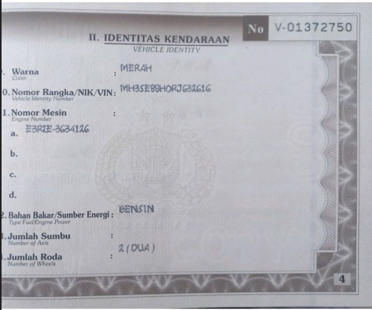 | No. Rangka | : | MH3SE88H0RJ632616 |