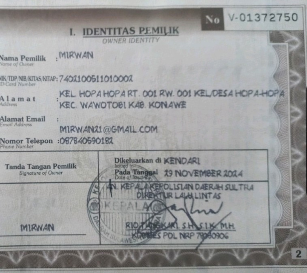 | STNK | : | Tidak Ada |