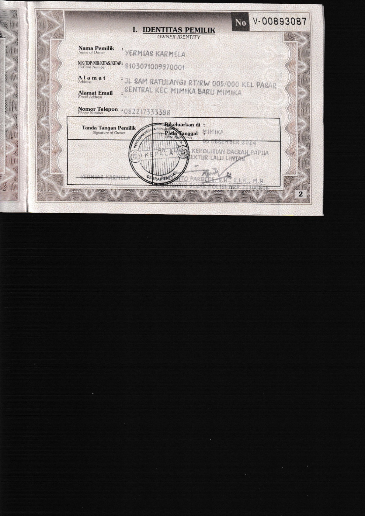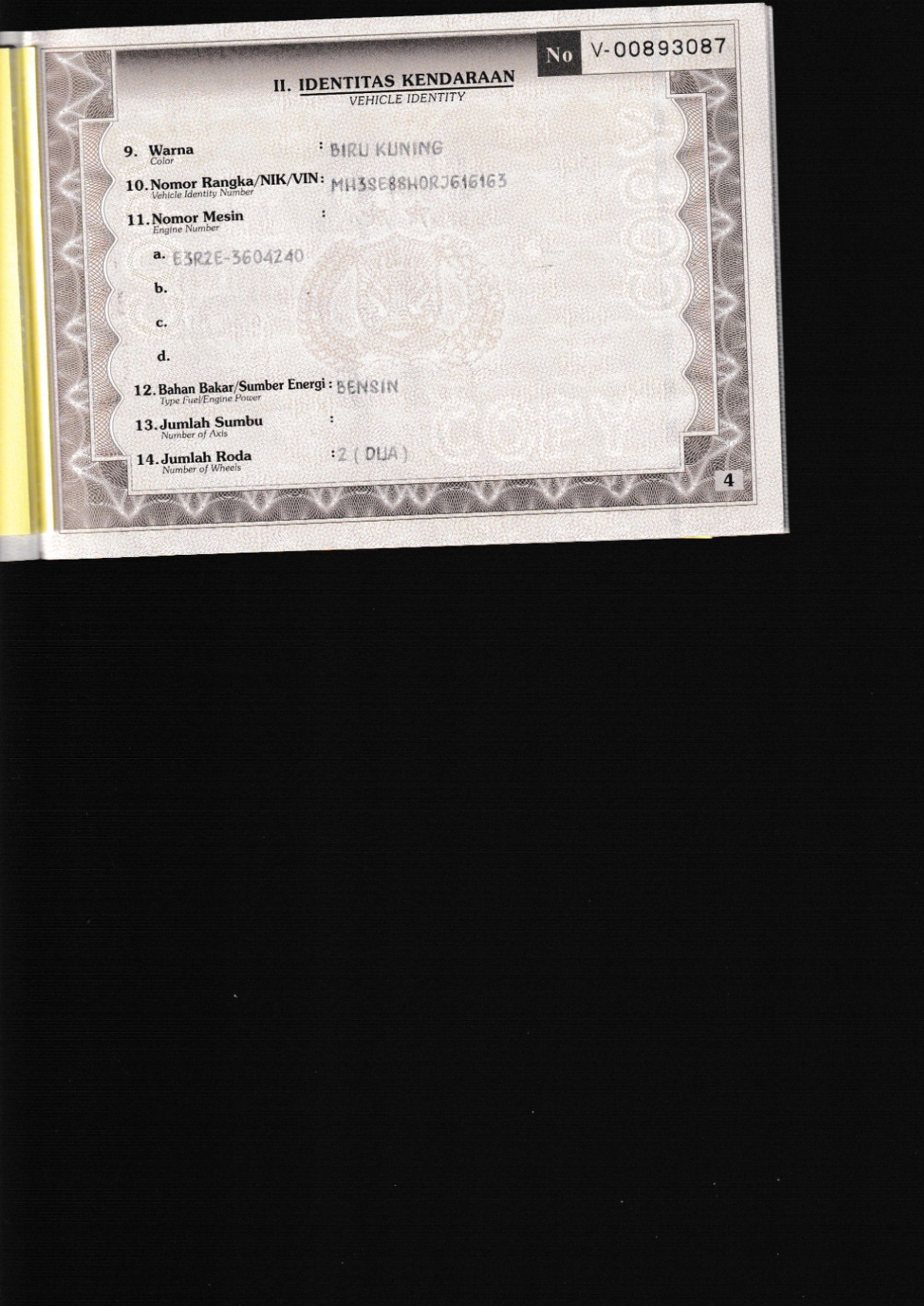 | No. Rangka | : | MH3SE88H0RJ616163 |