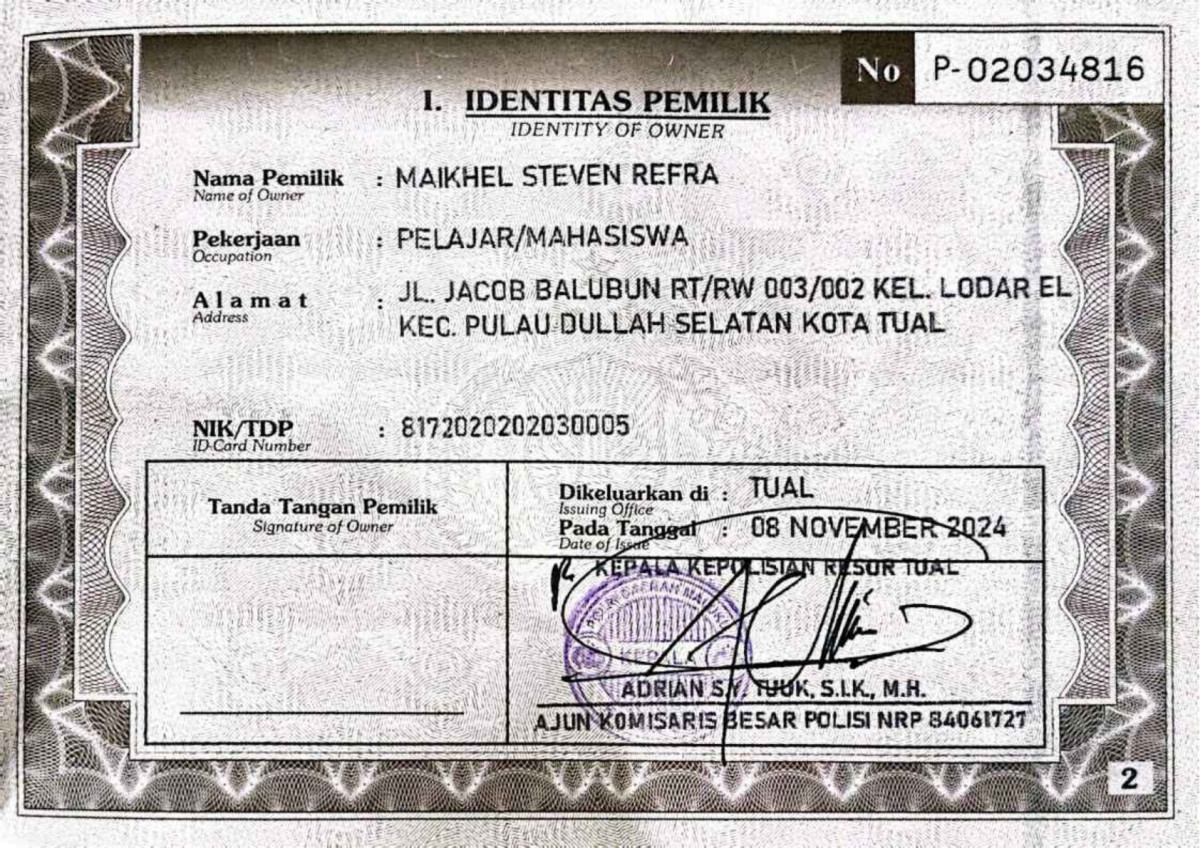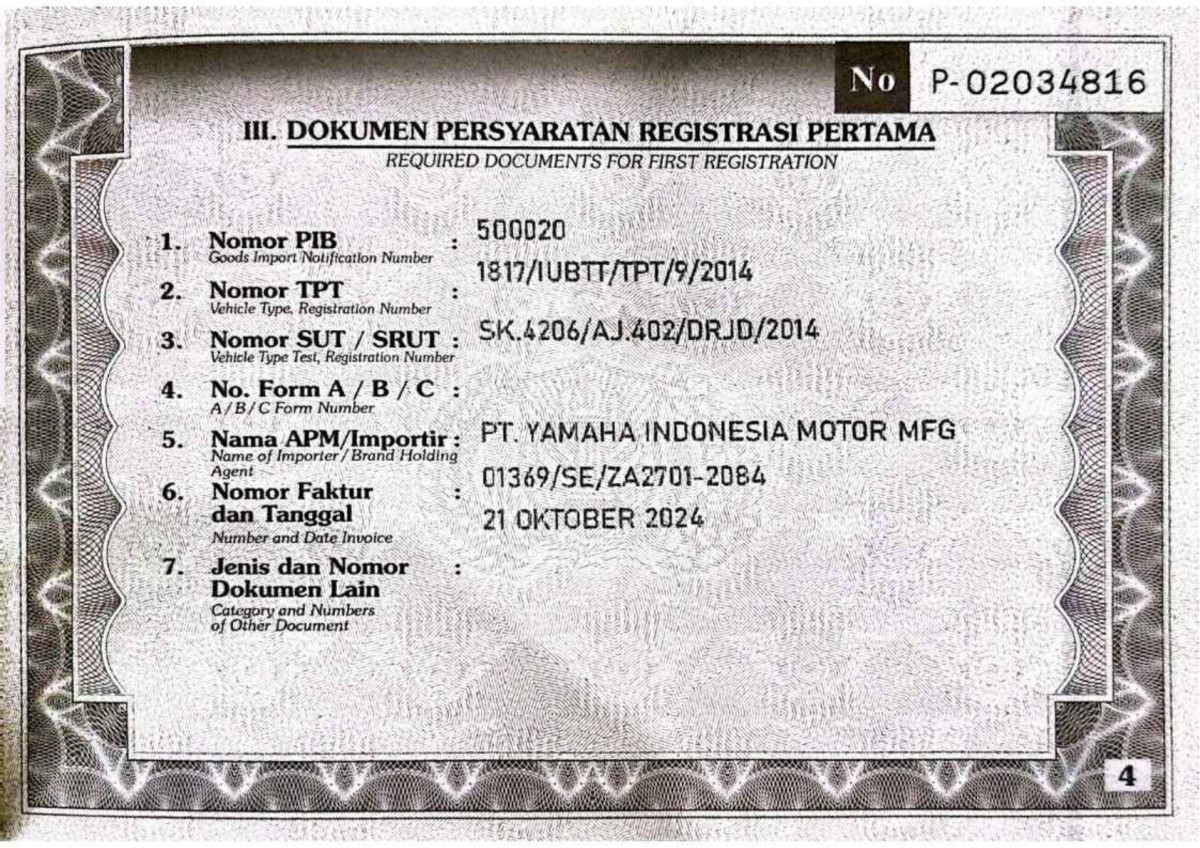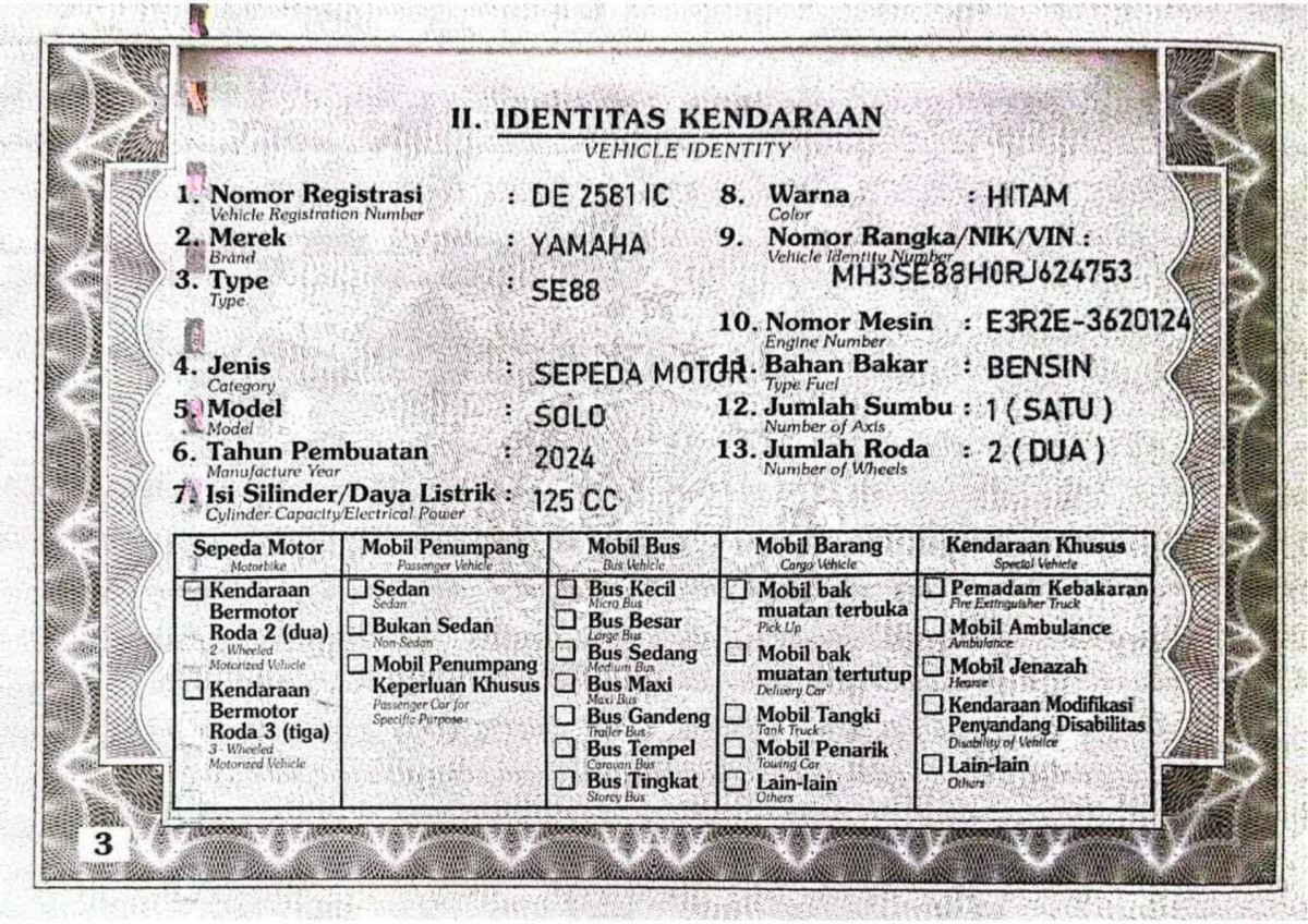 | No. Rangka | : | MH3SE88H0RJ624753 |
