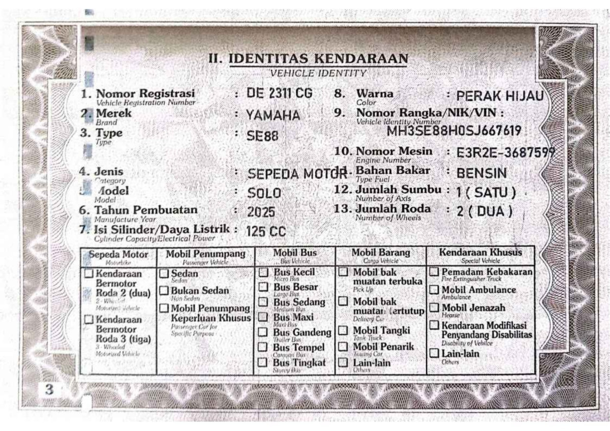 | No. Rangka | : | MH3SE88H0SJ667619 |