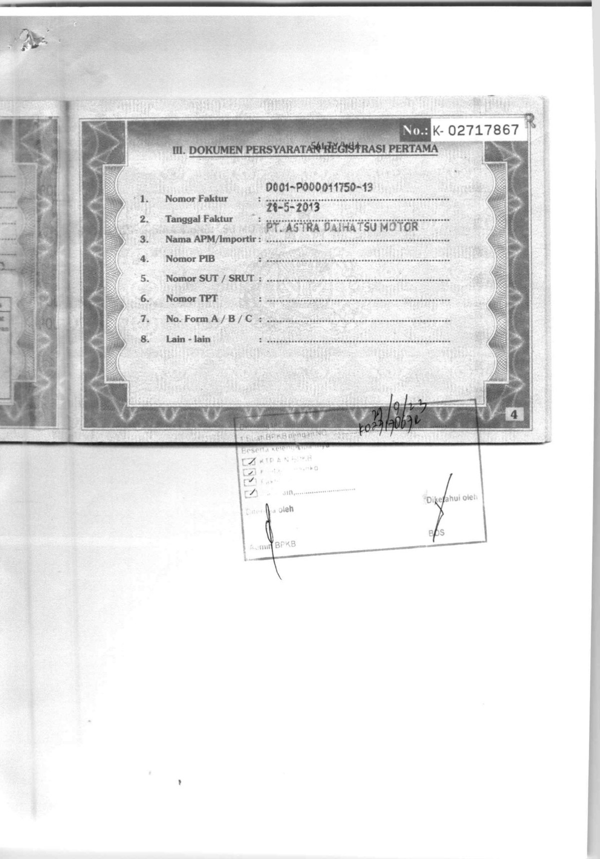 | No. Rangka | : | MHKV1BA2JDK047075 |