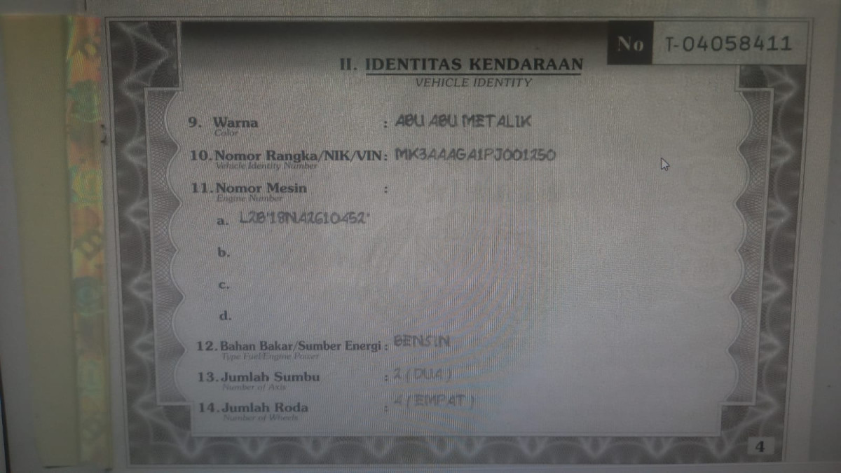 | No. Rangka | : | MK3AAAGA1PJ001250 |