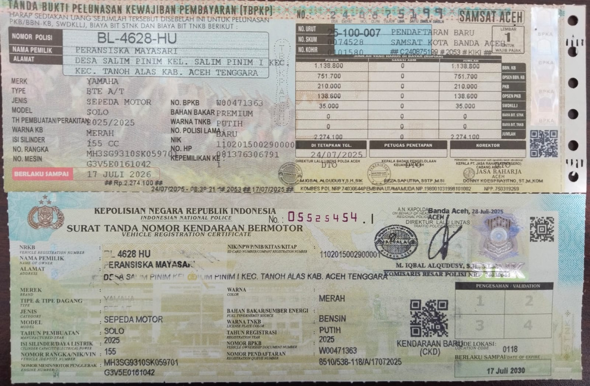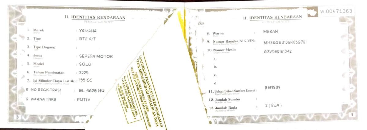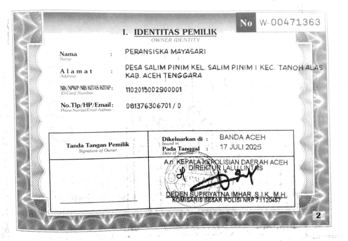 | No. Polisi | : | BL 4628 HU |