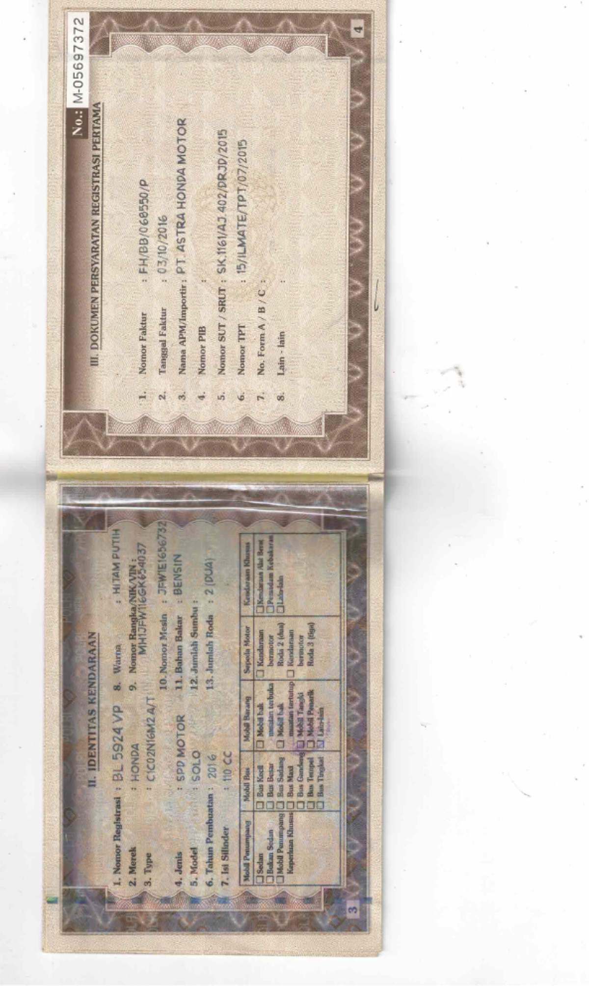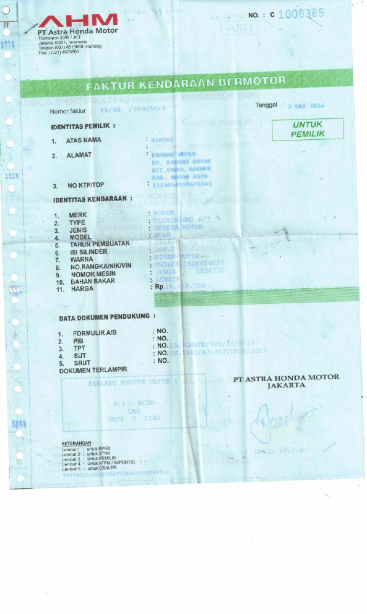 KM94368, UNIT HIDUP ACCU SOAK, BAN DEPAN TIPIS, SAYAP DEPAN KANAN PECAH, FAIRING DALAM PECAH, BODY KIRI PECAH, CVT KASAR// UNIT TIDAK DILAKUKAN PENGECEKAN OLEH TIM SMARTBID// SEBELUM MELAKUKAN PENAWARAN HARAP CEK KONDISI UNIT DAN DOKUMEN TERLEBIH DAHULU// WAJIB MENGHUBUNGI PIC DAN DATANG KE LOKASI UNTUK PENGECEKAN UNIT// UNIT DILELANG APA ADANYA PERMASALAHAN YANG TIMBUL DILUAR TANGGUNG JAWAB SMARTBID// JIKA INGIN MENGAMBIL UNIT HARAP UNTUK KONFIRMASI DAHULU KE SMARTBID // JIKA YANG MENGAMBIL BIDDER HARAP MEMBAWA KTP ASLI// PENGAMBILAN UNIT H+2 HARI KERJA SETELAH PELUNASAN// FOTO NOKA DAN NOSIN TA//