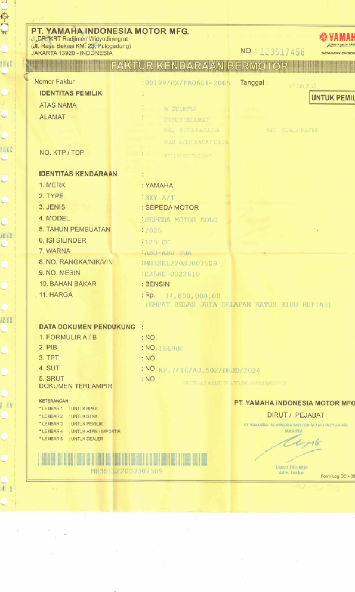 | No. Rangka | : | MH3SEL220SJ007509 |