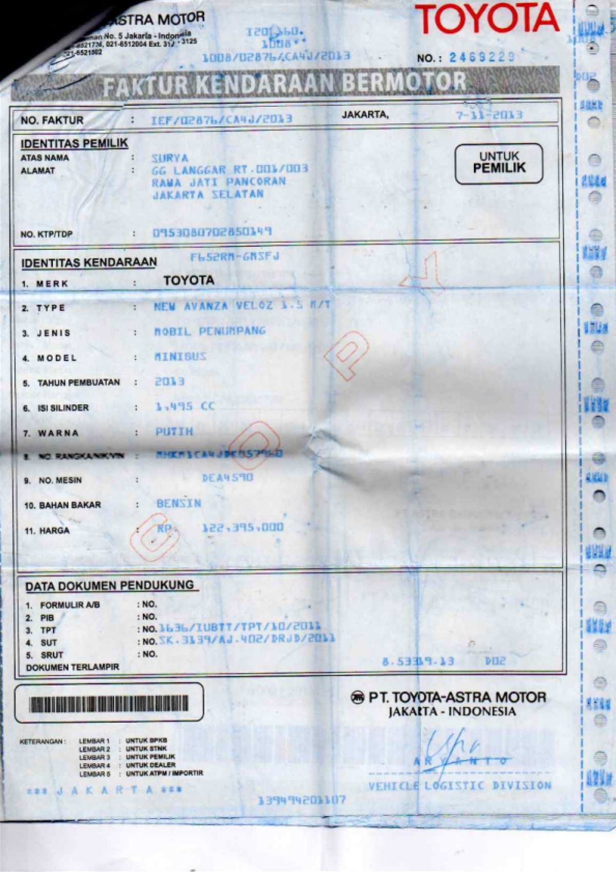 UNIT TIDAK DILAKUKAN PENGECEKAN OLEH TIM SMARTBID// SEBELUM MELAKUKAN PENAWARAN HARAP CEK KONDISI UNIT DAN DOKUMEN TERLEBIH DAHULU// WAJIB MENGHUBUNGI PIC DAN DATANG KE LOKASI UNTUK PENGECEKAN UNIT// UNIT DILELANG APA ADANYA PERMASALAHAN YANG TIMBUL DILUAR TANGGUNG JAWAB SMARTBID// PENGAMBILAN UNIT SLIDE H+2 DARI PELUNASAN // JIKA INGIN MENGAMBIL UNIT HARAP UNTUK KONFIRMASI DAHULU KE SMARTBID // JIKA YANG MENGAMBIL BIDDER HARAP MEMBAWA KTP ASLI // JIKA PENGAMBILAN DIWAKILKAN WAJIB MEMBAWA SURAT KUASA ASLI // UNIT DIKENAKAN BIAYA PPN 1,1% DARI HARGA TERBENTUK// PEMENANG LELANG DIKENAKAN BIAYA ROYA FIDUSIA 100.000 // HUBUNGI PIC FrengkiS 081346633780//FOTO NOKA NOSIN TA