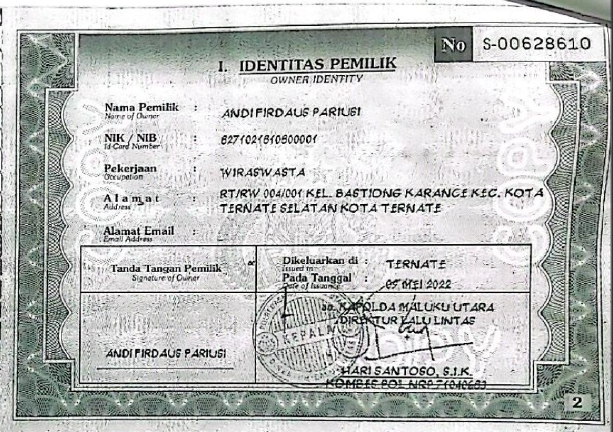 NOPOL FISIK T/A // Mesin Tidak Hidup, Body Lecet, Spion TA, KM 0// UNIT TIDAK DILAKUKAN PENGECEKAN OLEH TIM SMARTBID// SEBELUM MELAKUKAN PENAWARAN HARAP CEK KONDISI UNIT DAN DOKUMEN TERLEBIH DAHULU// WAJIB MENGHUBUNGI PIC DAN DATANG KE LOKASI UNTUK PENGECEKAN UNIT// UNIT DILELANG APA ADANYA PERMASALAHAN YANG TIMBUL DILUAR TANGGUNG JAWAB SMARTBID// JIKA INGIN MENGAMBIL UNIT HARAP UNTUK KONFIRMASI DAHULU KE SMARTBID // JIKA YANG MENGAMBIL BIDDER HARAP MEMBAWA KTP ASLI// PENGAMBILAN UNIT H+2 HARI KERJA SETELAH PELUNASAN//