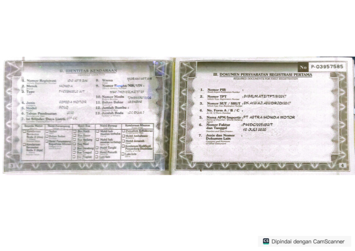 | No. Polisi | : | DG 4378 QN |
