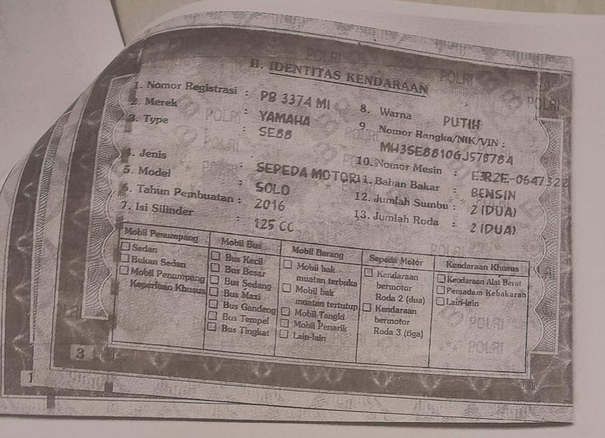 MESIN MATI TOTAL, TIDAK ADA STNK PAJAK, DAN TIDAK ADA SPION//SEBELUM MELAKUKAN PENAWARAN HARAP CEK KONDISI UNIT DAN DOKUMEN TERLEBIH DAHULU// WAJIB MENGHUBUNGI PIC DAN DATANG KE LOKASI UNTUK PENGECEKAN UNIT// UNIT DILELANG APA ADANYA PERMASALAHAN YANG TIMBUL DILUAR TANGGUNG JAWAB SMARTBID// JIKA INGIN MENGAMBIL UNIT HARAP UNTUK KONFIRMASI DAHULU KE SMARTBID // JIKA YANG MENGAMBIL BIDDER HARAP MEMBAWA KTP ASLI// PENGAMBILAN UNIT H+2 HARI KERJA SETELAH PELUNASAN//ADA PERBEDAAN NOPOL FISIK DAN DOKUMEN BPKB/NOPOL FISIK PB 5359 MF,NOPOL BPKB PB 3374 MI//NOPOL FIISIK PALSU// FOTO BPKB BERUPA FOTOCOPY//