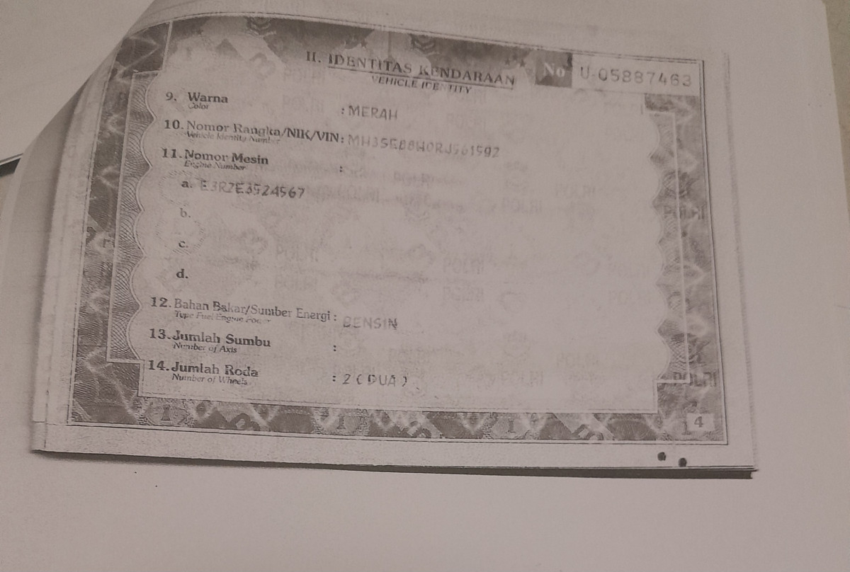 MESIN HIDUP, KNALPOT RACING, BODY BARET, STNK TA//SEBELUM MELAKUKAN PENAWARAN HARAP CEK KONDISI UNIT DAN DOKUMEN TERLEBIH DAHULU// WAJIB MENGHUBUNGI PIC DAN DATANG KE LOKASI UNTUK PENGECEKAN UNIT// UNIT DILELANG APA ADANYA PERMASALAHAN YANG TIMBUL DILUAR TANGGUNG JAWAB SMARTBID// JIKA INGIN MENGAMBIL UNIT HARAP UNTUK KONFIRMASI DAHULU KE SMARTBID // JIKA YANG MENGAMBIL BIDDER HARAP MEMBAWA KTP ASLI// PENGAMBILAN UNIT H+2 HARI KERJA SETELAH PELUNASAN// FOTO BPKB BERUPA FOTOCOPY//
