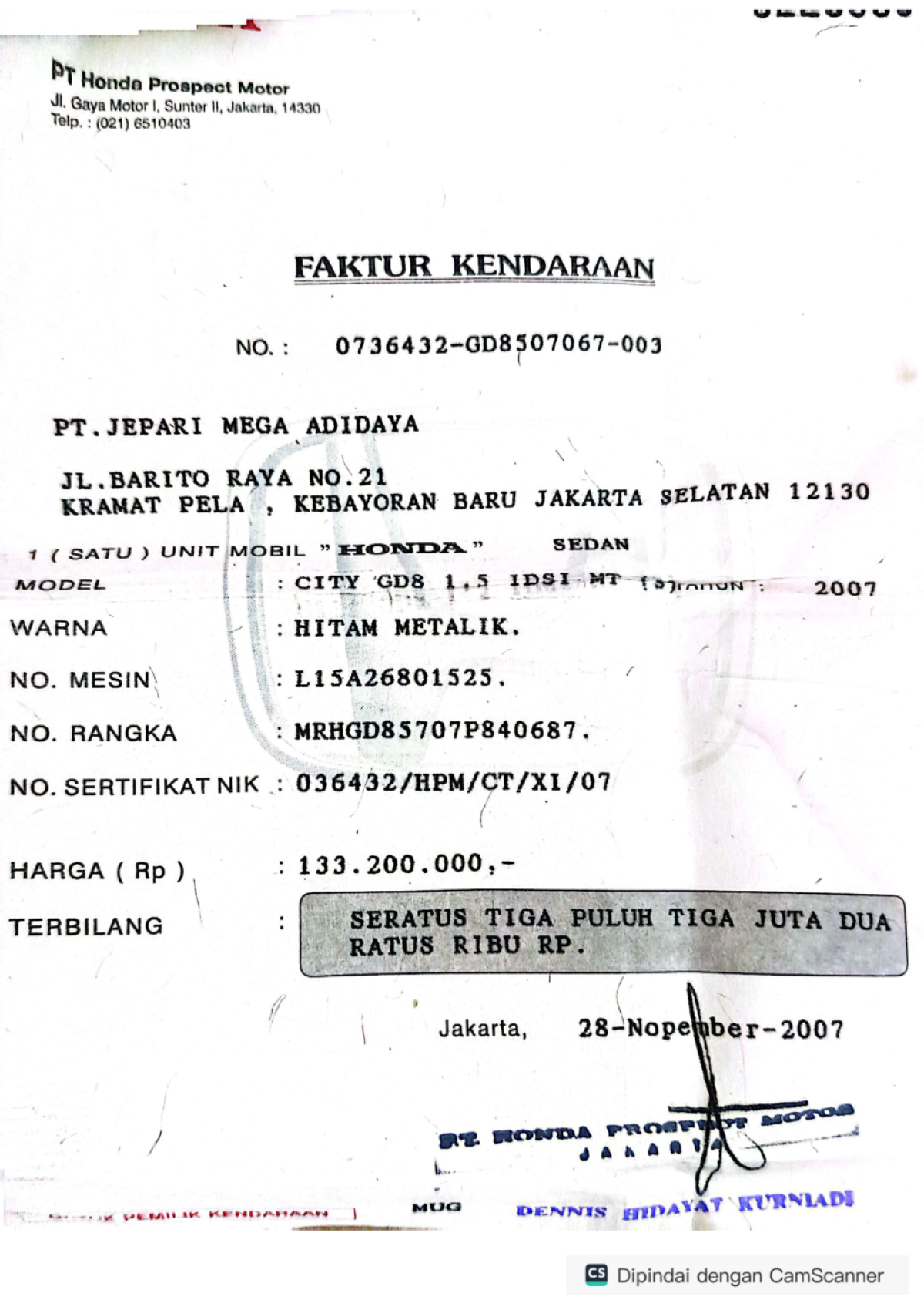 | No. Polisi | : | B 1356 NF |