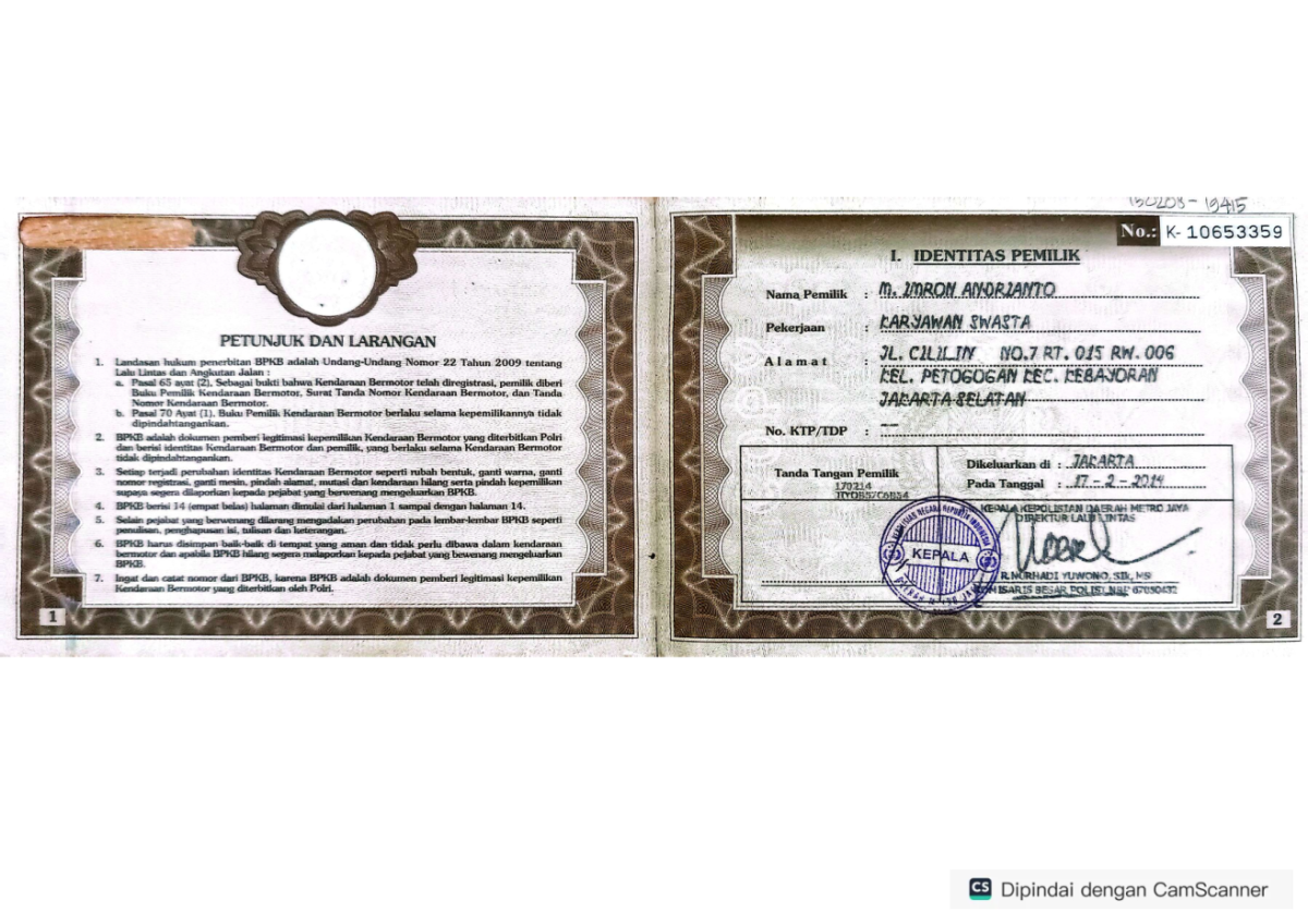 | BPKB | : | 20 hari kerja |