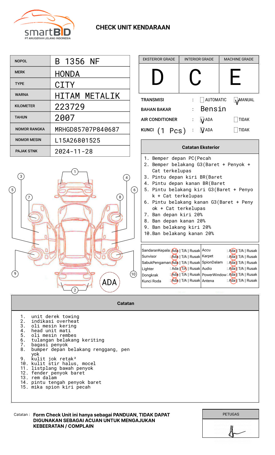 SEBELUM MELAKUKAN PENAWARAN UNIT PESERTA LELANG WAJIB MELAKUKAN PENGECEKAN UNIT DAN DOKUMEN TERLEBIH DAHULU // PIC WAHYU : 082124062748// UNIT DIKENAKAN BIAYA PPN 1.1% DARI HARGA TERBENTUK //