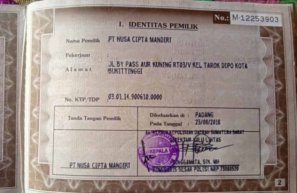 | No. Polisi | : | BA 9845 LU |