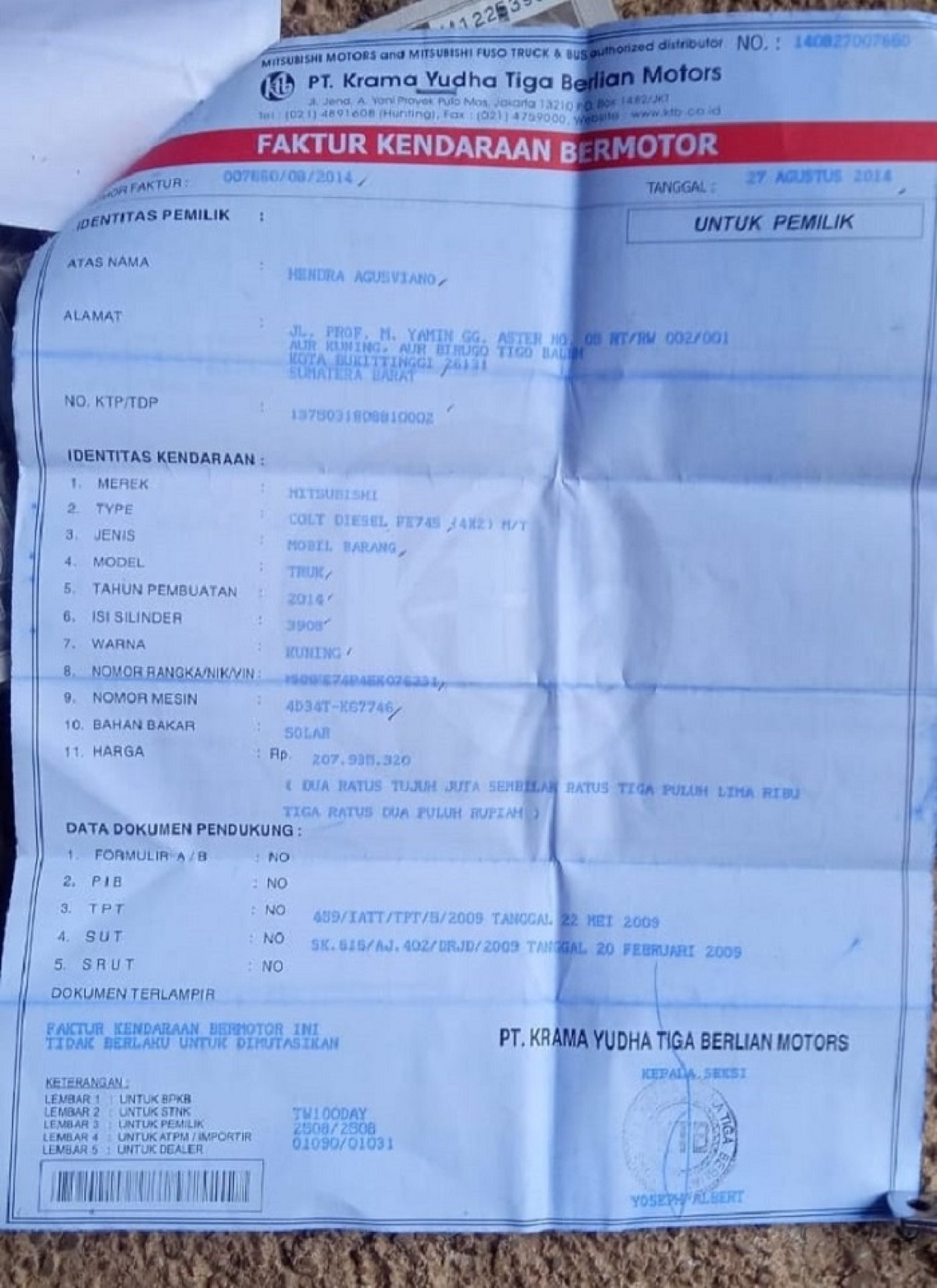 | Faktur | : | Tidak Ada |