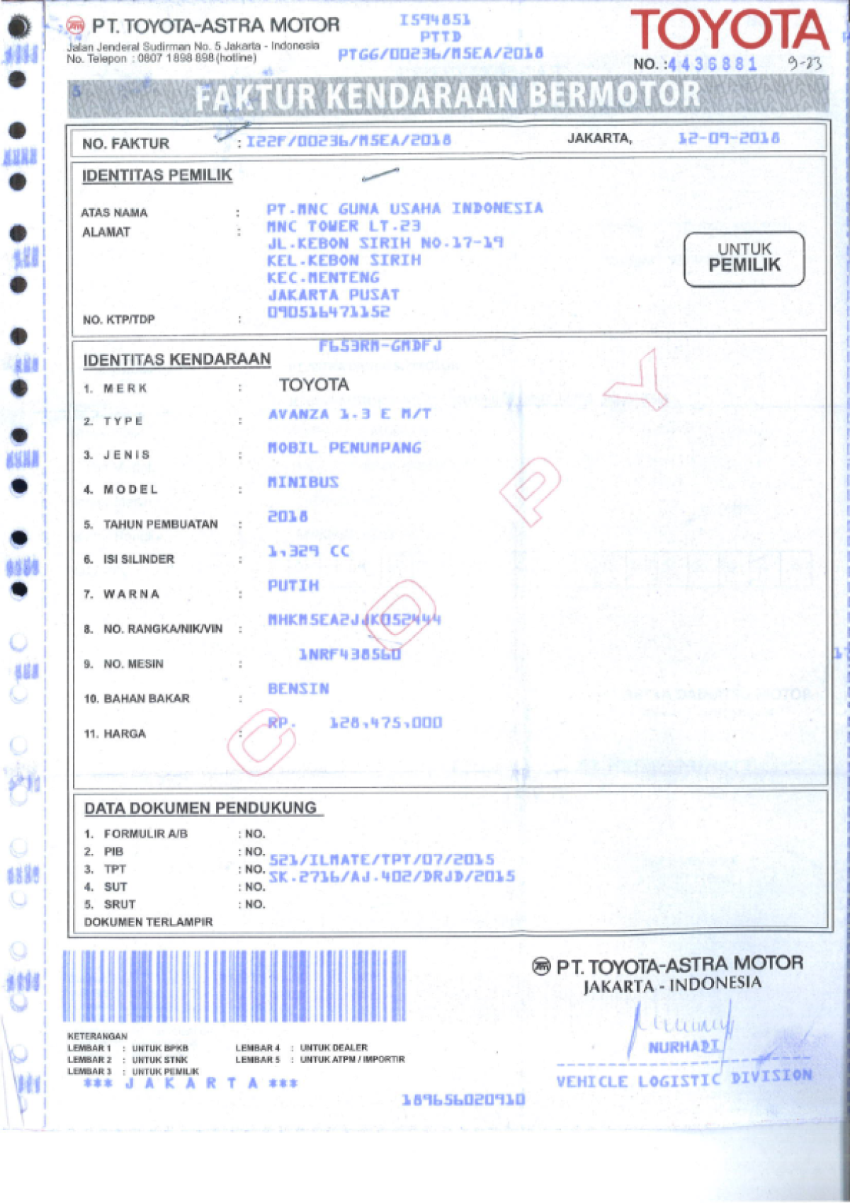 | No. Rangka | : | MHKM5EA2JJK052444 |
