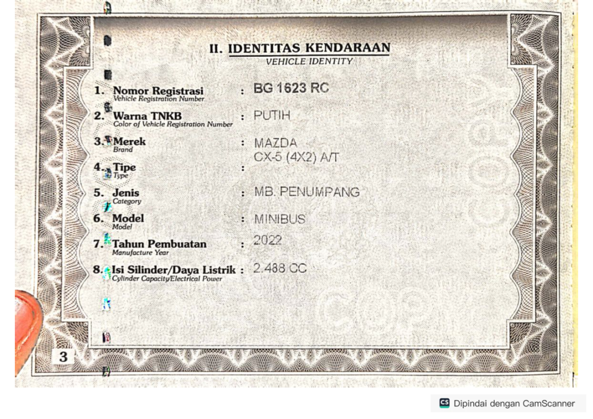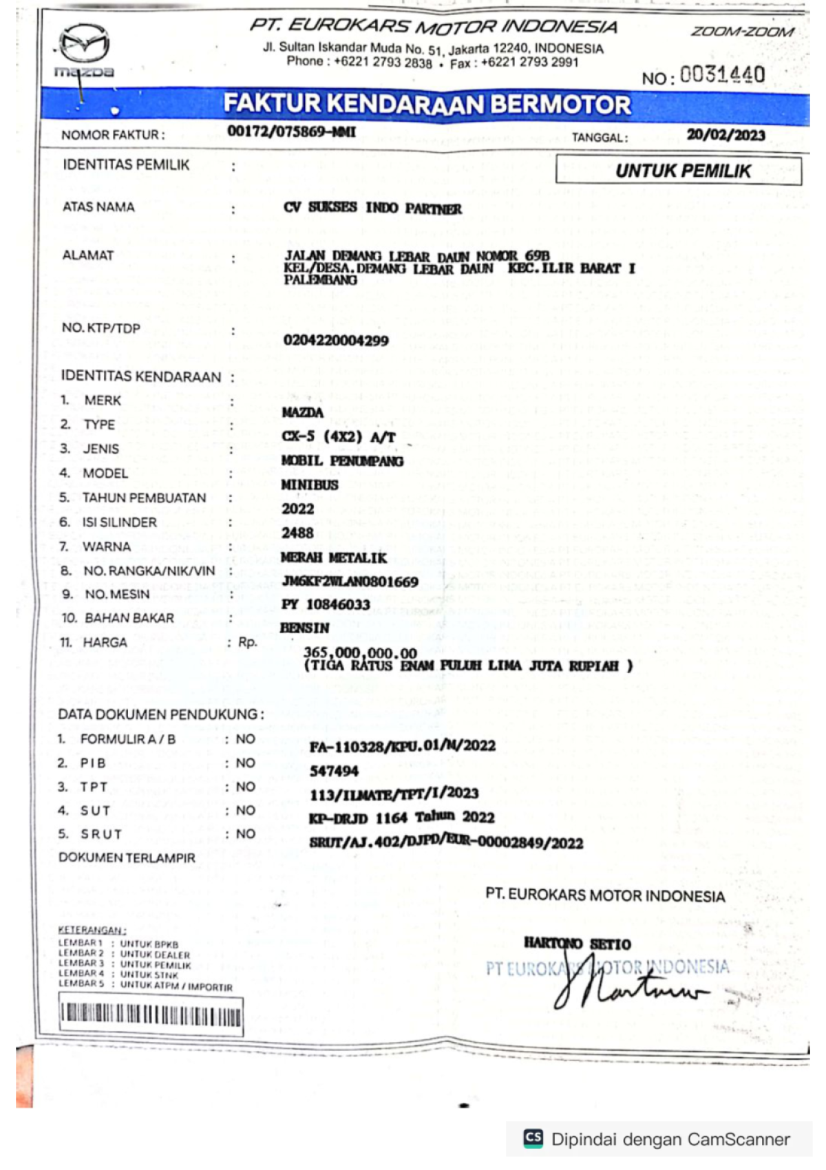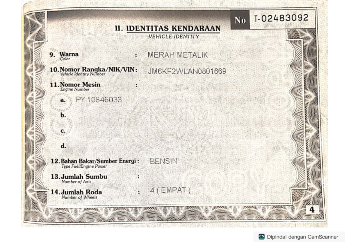 | No. Rangka | : | JM6KF2WLAN0801669 |