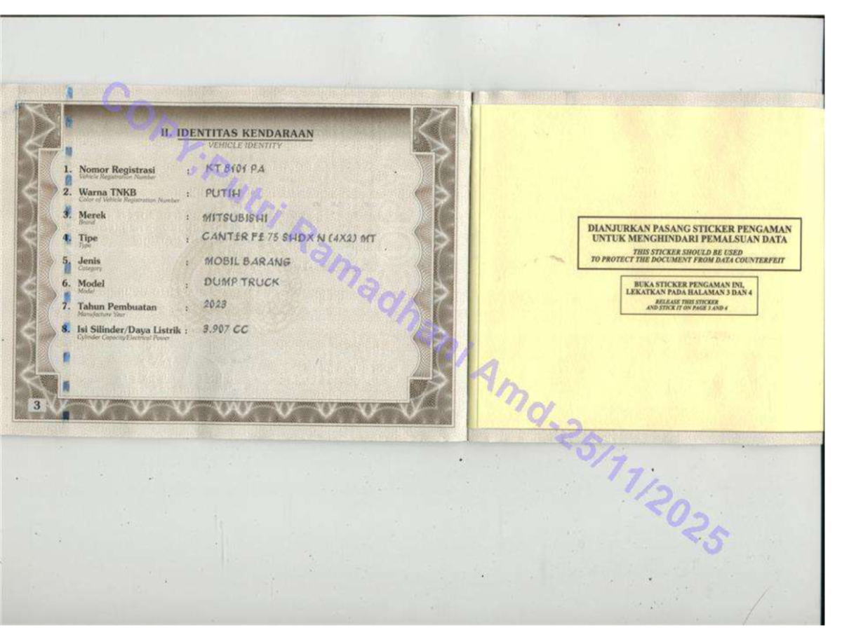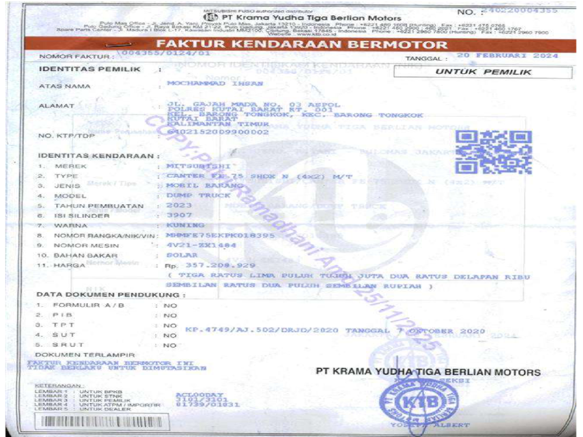 | No. Polisi | : | KT 8101 PA |