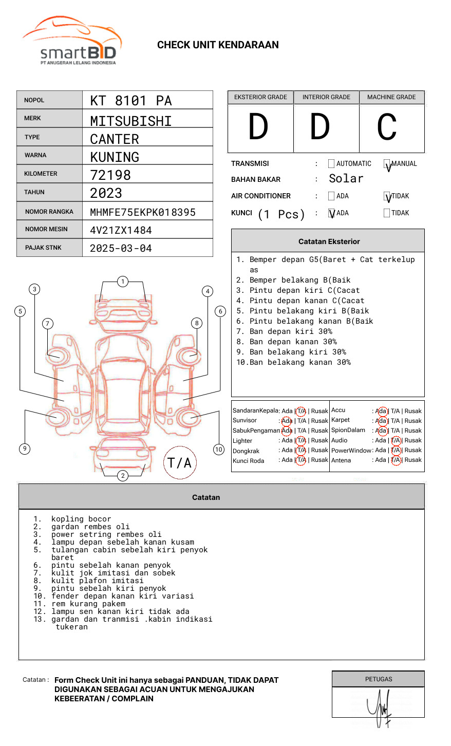 SEBELUM MELAKUKAN PENAWARAN UNIT PESERTA LELANG WAJIB MELAKUKAN PENGECEKAN UNIT DAN DOKUMEN TERLEBIH DAHULU // PIC PUTRA YADI 0821-2783-7606 // GUSTI 0822-5053-1175 // UNIT DIKENAKAN BIAYA PPN 1.1% DARI HARGA TERBENTUK //