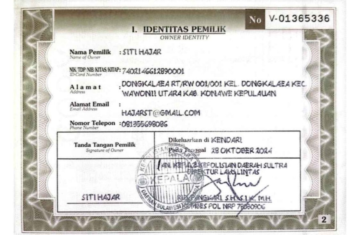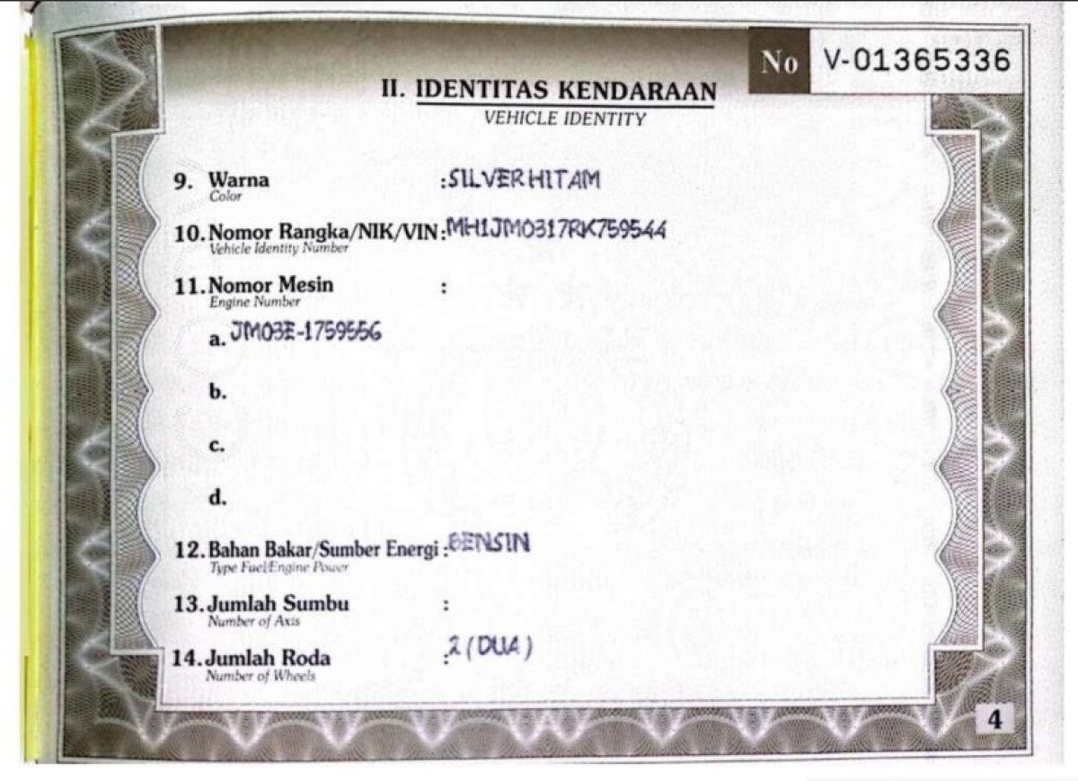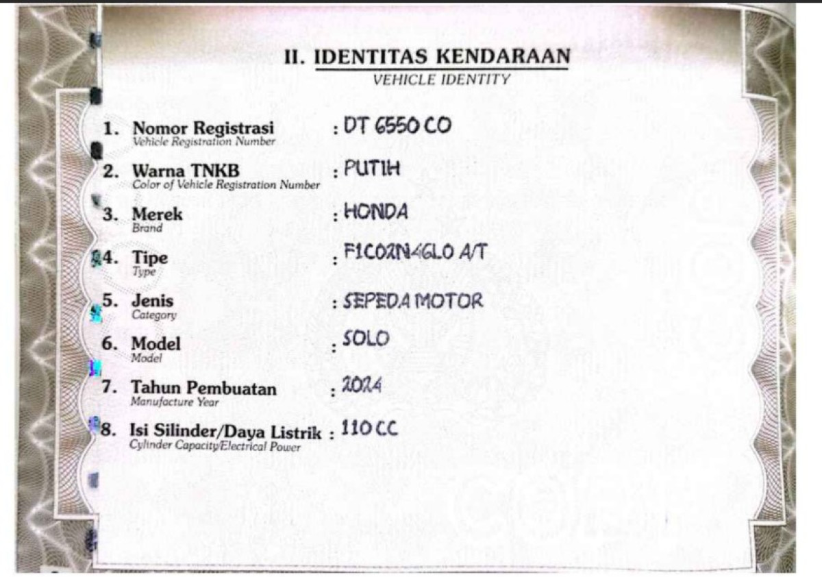 | STNK | : | Tidak Ada |