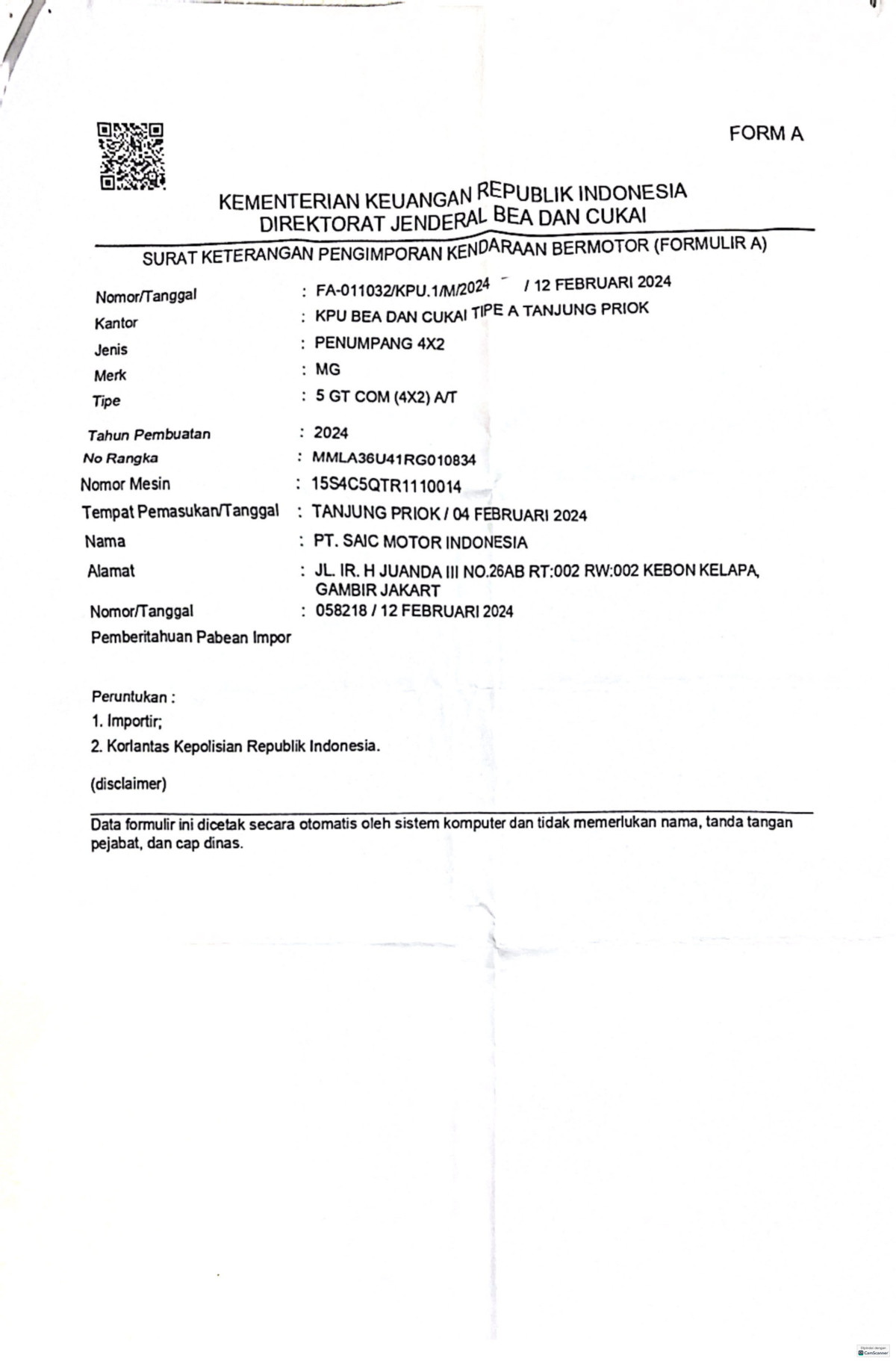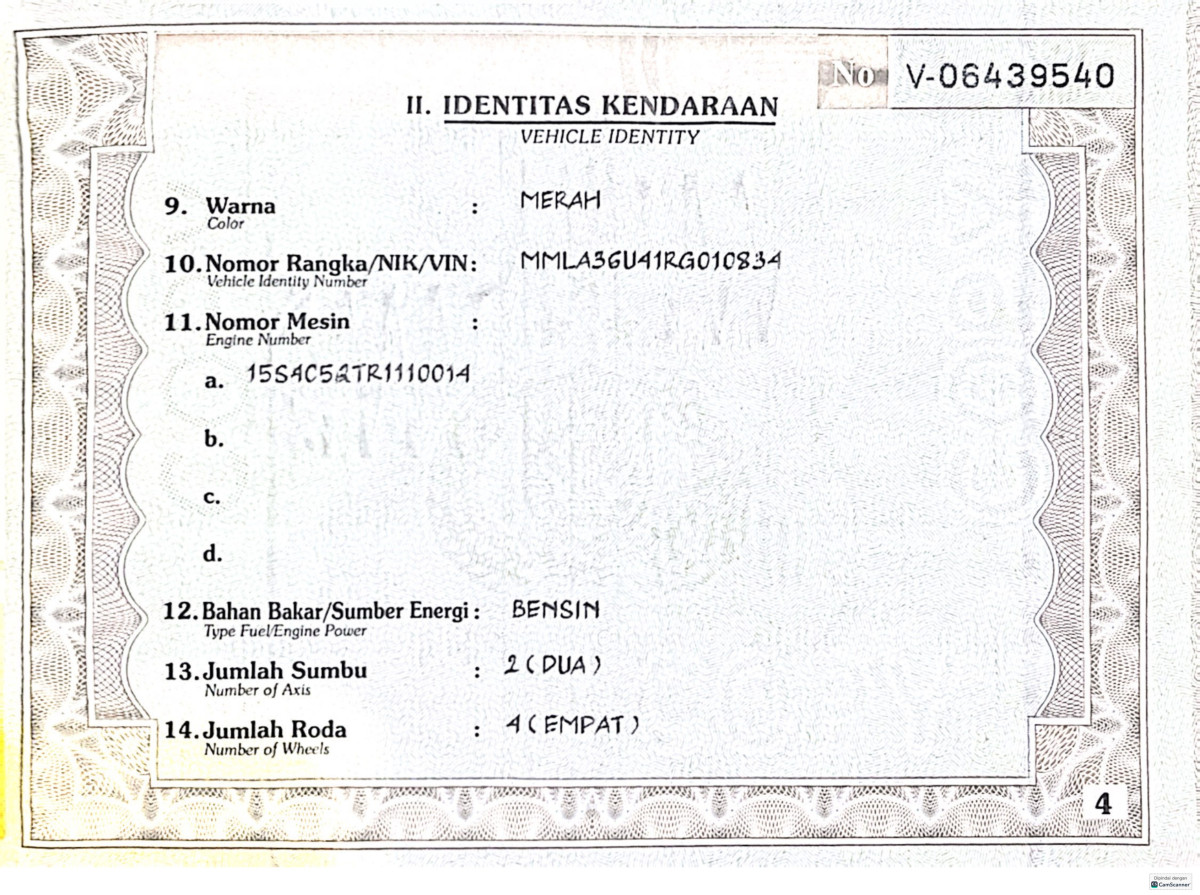 | No. Mesin | : | 15S4C5QTR1110014 |