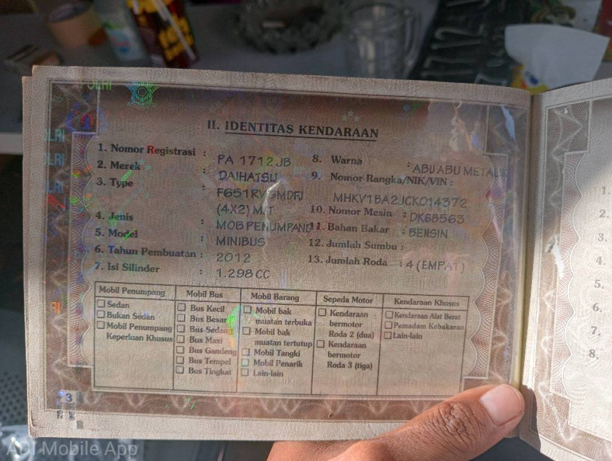 UNIT TIDAK DILAKUKAN PENGECEKAN OLEH TIM SMARTBID// SEBELUM MELAKUKAN PENAWARAN HARAP CEK KONDISI UNIT DAN DOKUMEN TERLEBIH DAHULU// WAJIB MENGHUBUNGI PIC DAN DATANG KE LOKASI UNTUK PENGECEKAN UNIT// UNIT DILELANG APA ADANYA PERMASALAHAN YANG TIMBUL DILUAR TANGGUNG JAWAB SMARTBID// PENGAMBILAN UNIT SLIDE H+2 DARI PELUNASAN // JIKA INGIN MENGAMBIL UNIT HARAP UNTUK KONFIRMASI DAHULU KE SMARTBID // JIKA YANG MENGAMBIL BIDDER HARAP MEMBAWA KTP ASLI // JIKA PENGAMBILAN DIWAKILKAN WAJIB MEMBAWA SURAT KUASA ASLI // UNIT DIKENAKAN BIAYA PPN 1,1% DARI HARGA TERBENTUK// LOKASI UNIT HUBUNGI Bpk. Michael 0813-5454-6050 / CS PUSAT 081188089292// Body baret, bumper variasi dan baret, lampu variasi dan kusam dan tidak lengkap, interior kusam, stir racing, head unit variasi, headrest t/a, sarung jok imitasi, interior kusam, fooglamp variasi, mesin rembes oli, ban dan velg variasi, unit ceper.//Gasket Cylinder Head | Gasket Cover Head | Header | Spring (RR) | Spring (FR) | Rim (Fr-R) | Rim (spare) | Tire (Fr-R) | Engine Services (Heavy) | Coil Ignition | Rim (Rr-L) | Tire (Fr-L) | Fuel Pump | Tire (Rr-R) | Tire (spare) | Tire (Rr-L) | Wheel Bearing (Rr) | Rim (Rr-R) | Rim (Fr-L) | Fan Belt | Clutch Plate | Wheel Bearing (Fr) | Clutch Bearing | Shocbreakers (Rr) | Radiator | Brake Pad (Fr) | Brake Master | Radiator Fan | Injector | Shocbreakers (Fr) | Aircon Evaporator | Rack Steer | Spark Plug(s) | Battery | Brake Pad (Rr)/Carpet Floor (RR) | Carpet Floor (FR-R) | Interior Saloon | Carpet Floor (FR-L) | Headrest (M-R) | Bolt Crane and Jack | Headrest (M-L) | Headrest (Fr-L) | Tool Kit | Headrest (Fr-R) | Carpet | Carpet Floor (Mid) | Steering-wheel | Head Unit/Fog Lamp (L) | Turn Lamp (Fr-R) | Fog Lamp (R ) | Door Repair (Fr-L) | Turn Lamp (Fr-L) | Door Repair (Rr-L) | Taillight (Rr-R) | Engine Hood Repair | Turn Lamp (Rr-R) | Headlight (Fr-R) | Turn Lamp (Rr-L) | Door Repair (Rr-R) | Roof Repair | Door Repair (Fr-R) | Door Repair (Trunk) | Bumper Repair (Rr) | Taillight (Rr-L) | Bumper Replace (Fr) | Headlight (Fr-L)